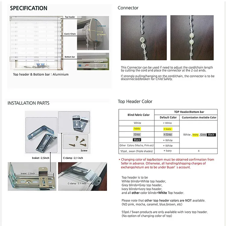 Blackout Zebra Roller Blind Fabric Bead String White French Windows Manual Control Blinds