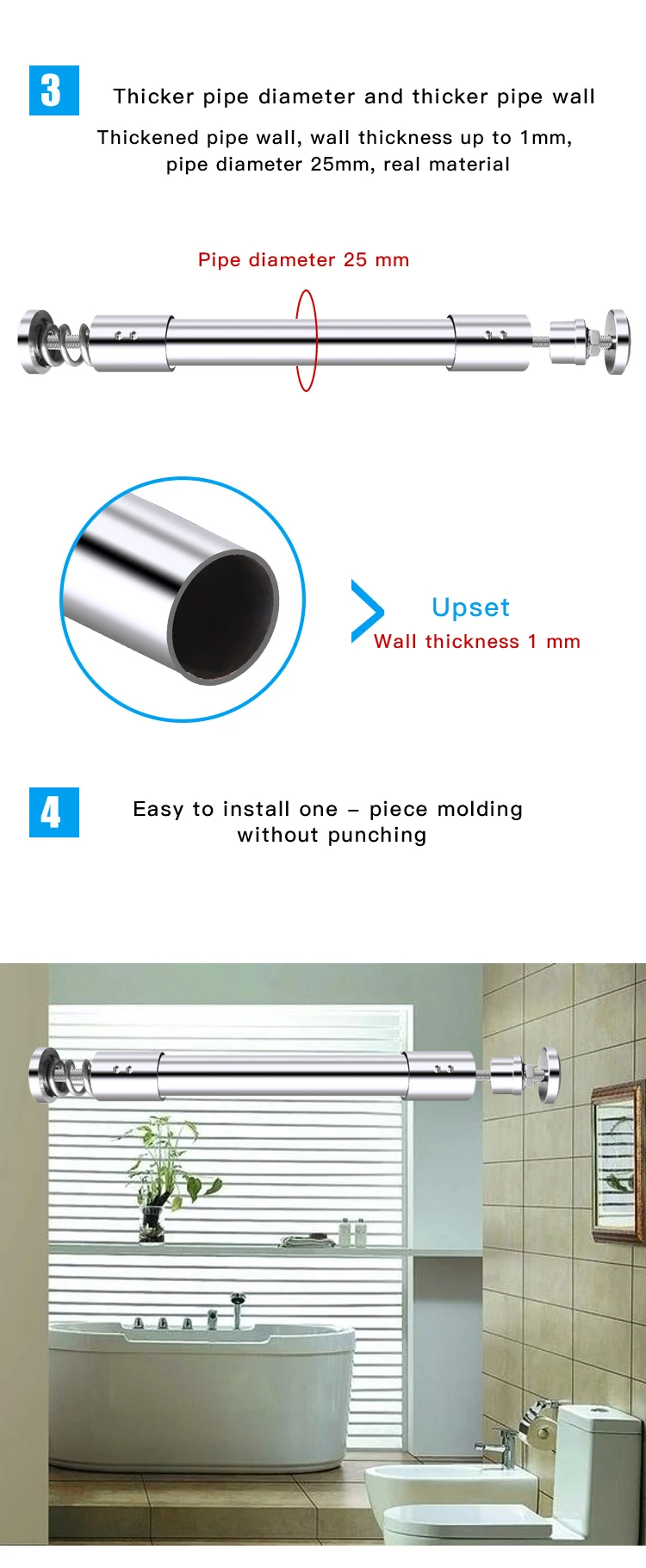 Home Bathroom Products,Sinks Bathroom Accessories & Others Others Xuzhou Xinpaez Water Purification Equipment Co., Ltd. Adjust and pressurize various sizes for shower curtain and shower curtain hook rod