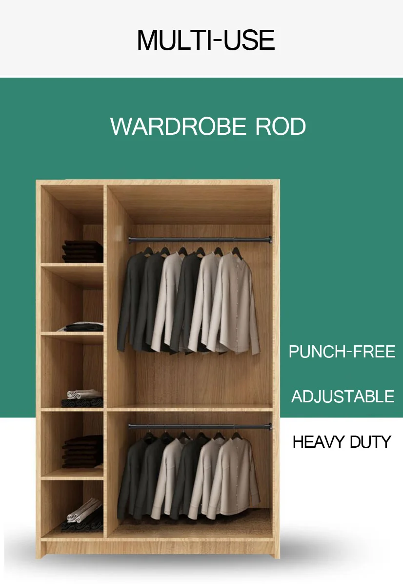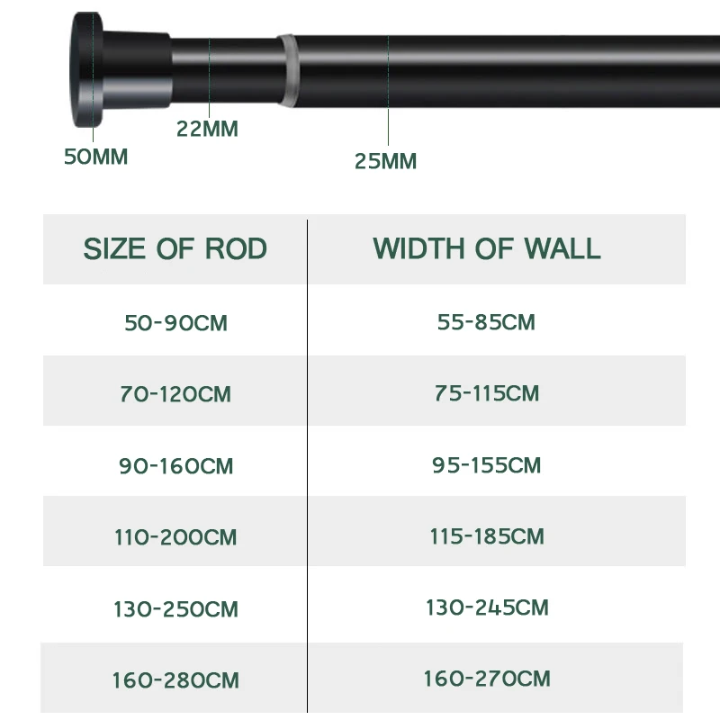Wardrobe Closet Rods Clothes Adjustable Poles Rail Drying Rack Rust Resistance Tension Shower Curtain Rod Telescopic Hangers