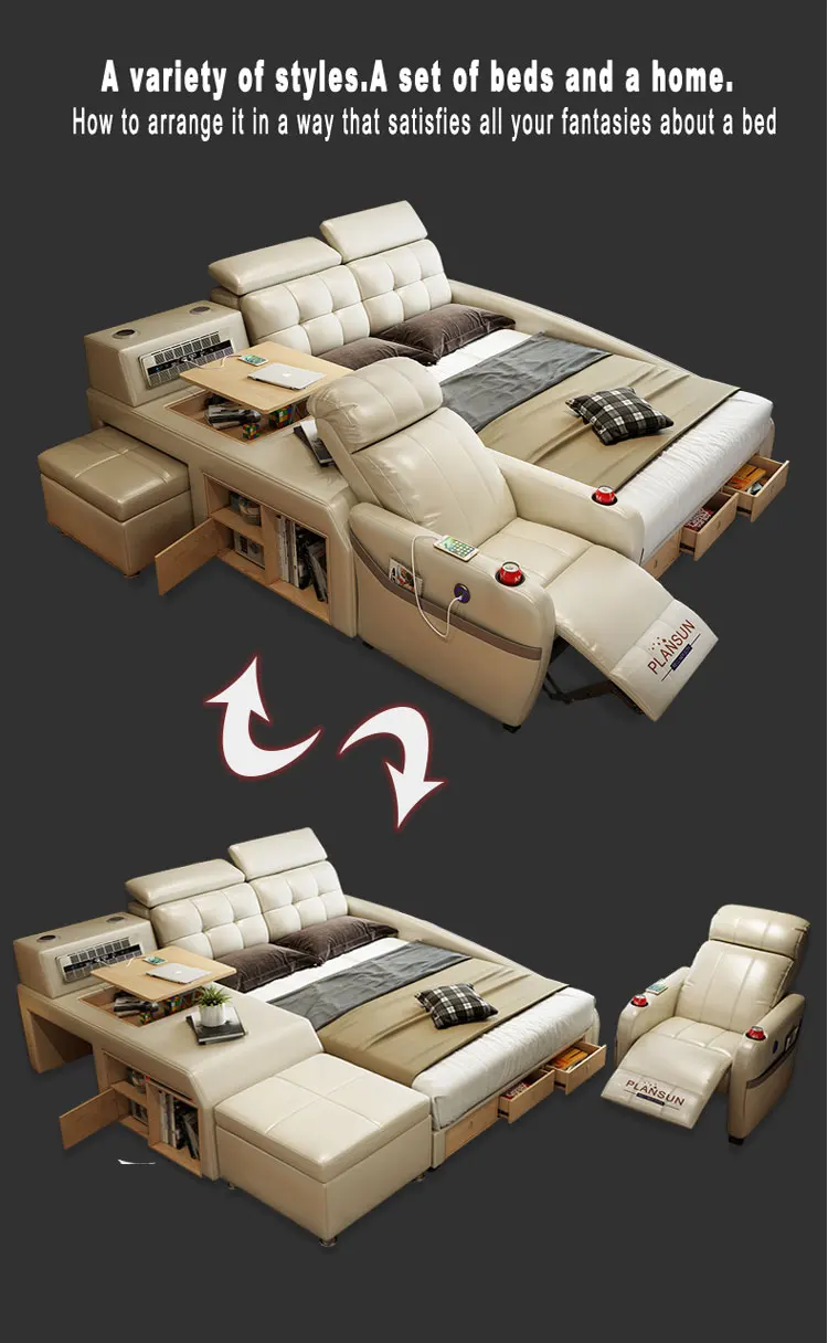 Home Movable Housing Furniture & Household Appliances Bedroom Furniture Beds Foshan Linerbang Furniture Co., Ltd. 2020 New design modern massage chair bed room furnitures king size queen size bed modern luxury set furnitures