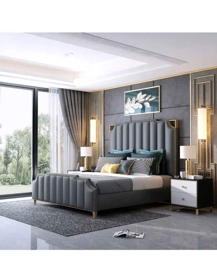 2021 Foshan salable Luxurious leather queen size modern bed Bedroom furniture double king size cheap bed
