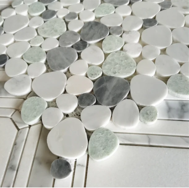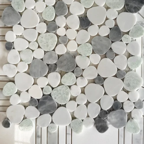Custom Design Bathroom Beach Balcony Room Sea Pebble Marble Decor Green Stone Floor Tile Mosaic Tiles For Sale Carrelag Salon