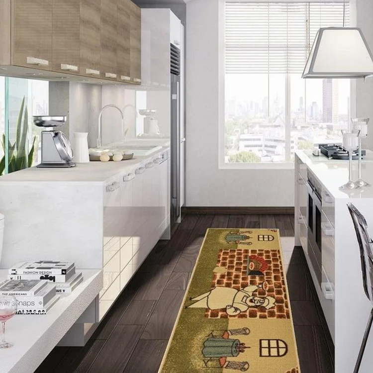 New Design Custom Print Non Slip Modern Water Absorbent Kitchen Floor Mats