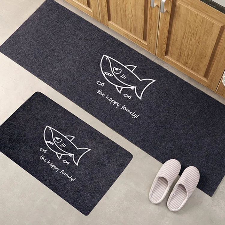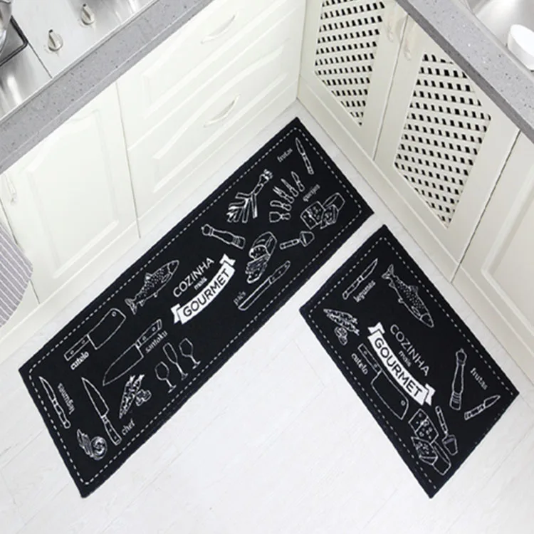 Decorative polyester anti-slip waterproof soft modern kitchen runner 2 piece floor rug mats set