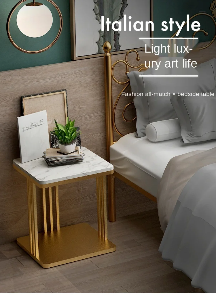Wrought iron bedside cabinet simple paint bedroom bedside cabinet economical small apartment gold