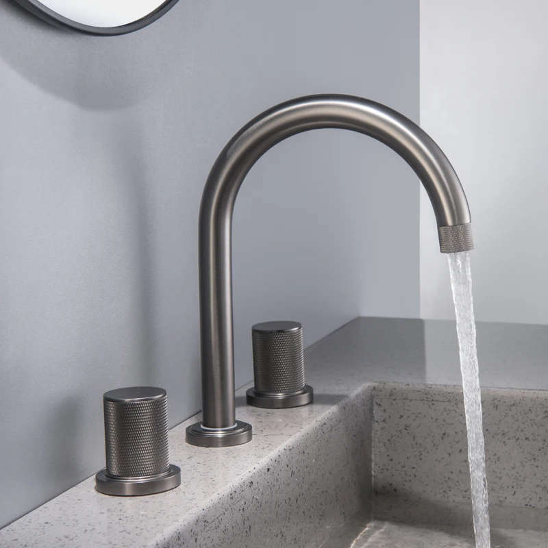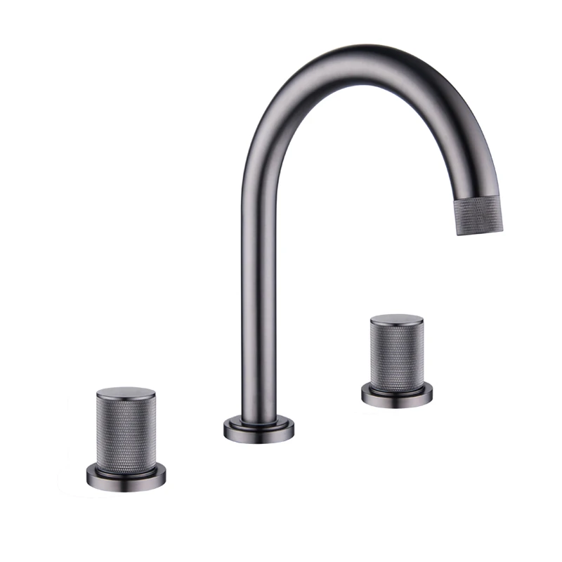 Home Bathroom Products,Sinks Bathroom Faucet & Shower Basin Faucet Jiangmen Yupo Trading Co., Ltd. Hot cold Water Deck Mounted Dual Handles Gooseneck Brass Split Basin Faucet Sink Faucet