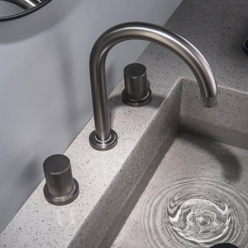 Hot cold Water Deck Mounted Dual Handles Gooseneck Brass Split Basin Faucet Sink Faucet