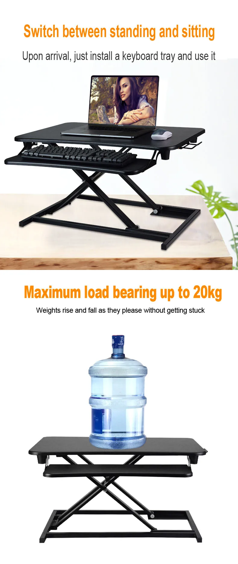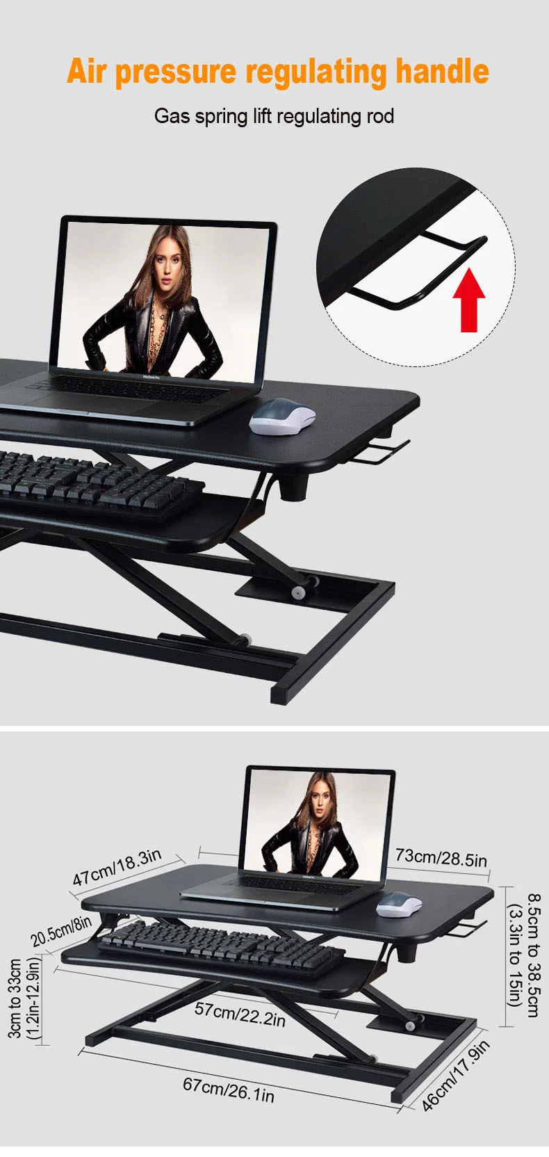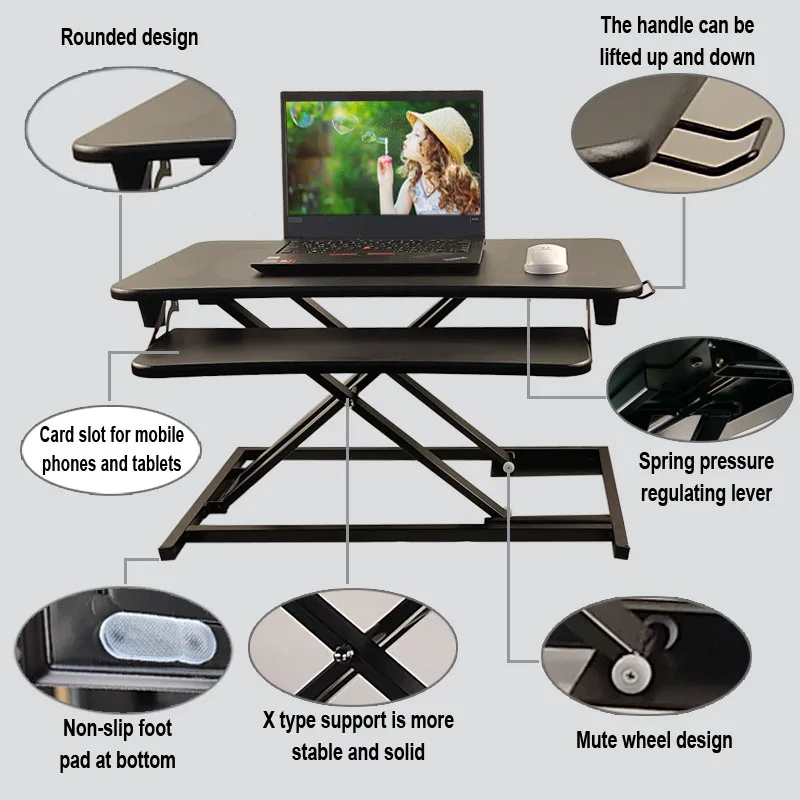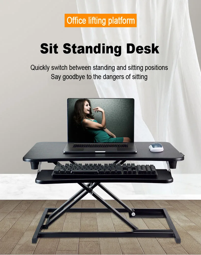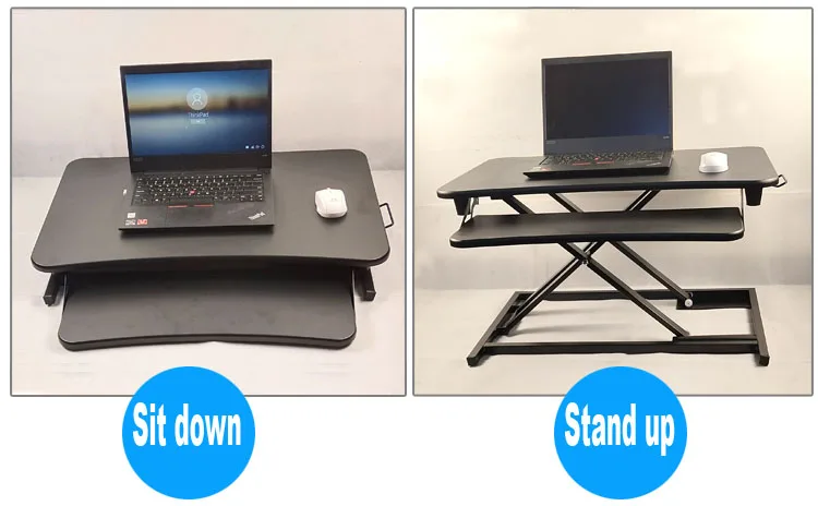 Good quality factory directly Movable Air spring lift MDF Desktop sit stand desktop workstation adjustable