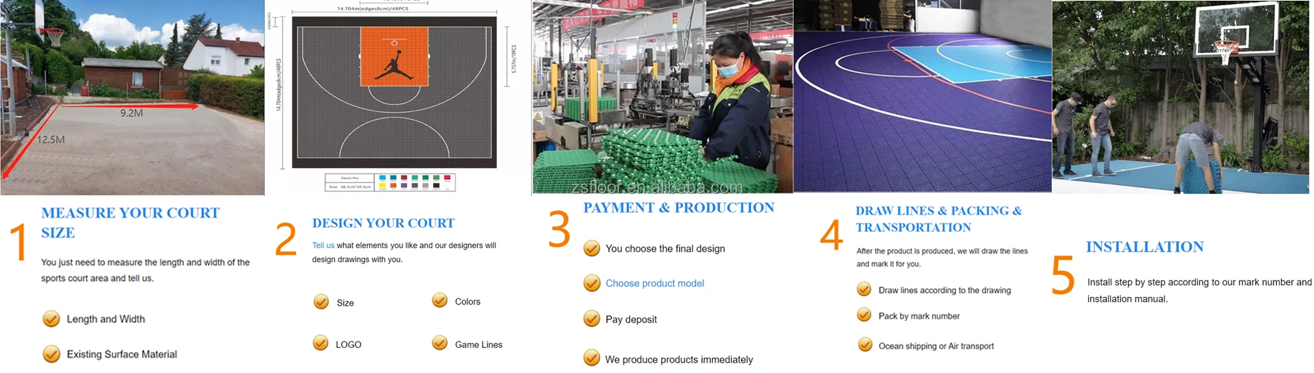 ZSFloor interlocking flooring tile is applied for multi purpose sport court like basketball, futsal, tennis, floorball, hockey,