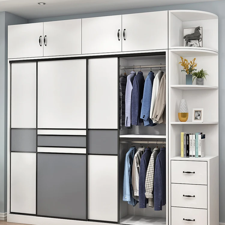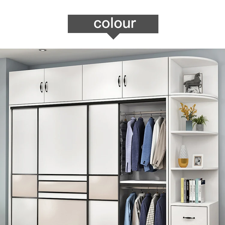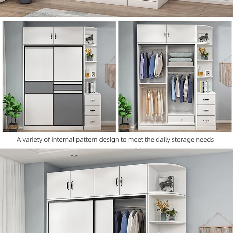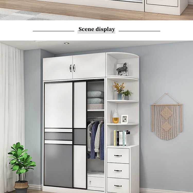 Sliding door wardrobe Solid wood modern simple assembly wardrobe Simple rental room wardrobe Children's cabinet Home bedroom