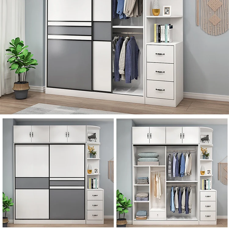 Home Movable Housing Furniture & Household Appliances Bedroom Furniture Movable Closet Xuzhou Yuanmuge Home Technology Co., Ltd. Sliding door wardrobe Solid wood modern simple assembly wardrobe Simple rental room wardrobe Children's cabinet Home bedroom