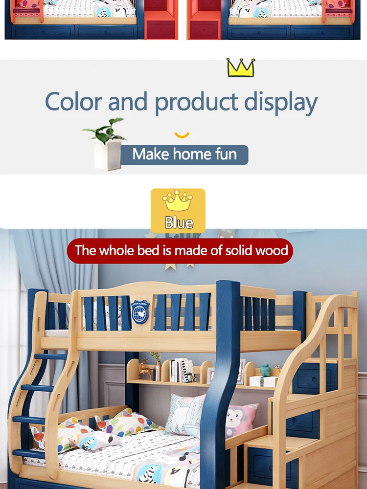 Custom Strong And Safe Modern 2021 Wood Bedroom Children Kids Bunk Beds