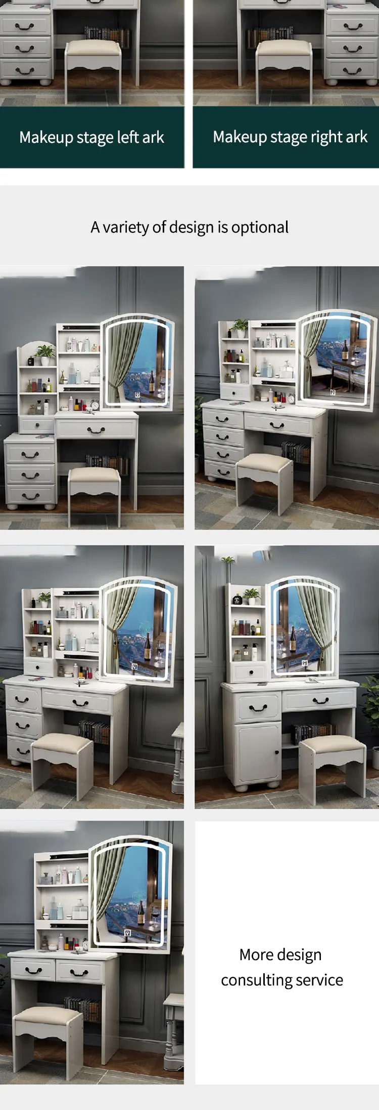 A: We are A custom furniture factory.You can provide us with pictures, sizes and colors, and we can produce them for you in a very short time. If you are interested, please come to China to visit our factory.