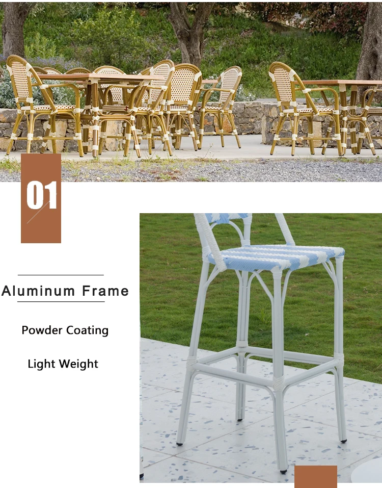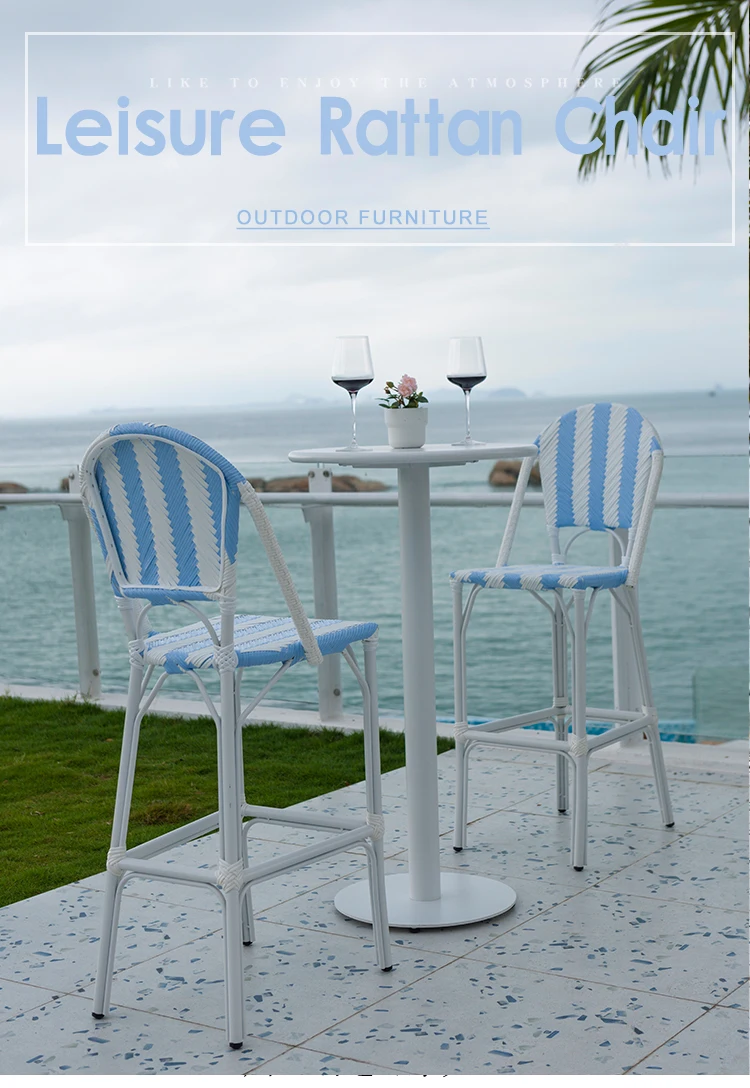 Modern Simple Outdoor High Bar Beach Rattan Wicker Chair Patio Garden Bar Stools And Restaurant Dining Chair And Table Sectional
