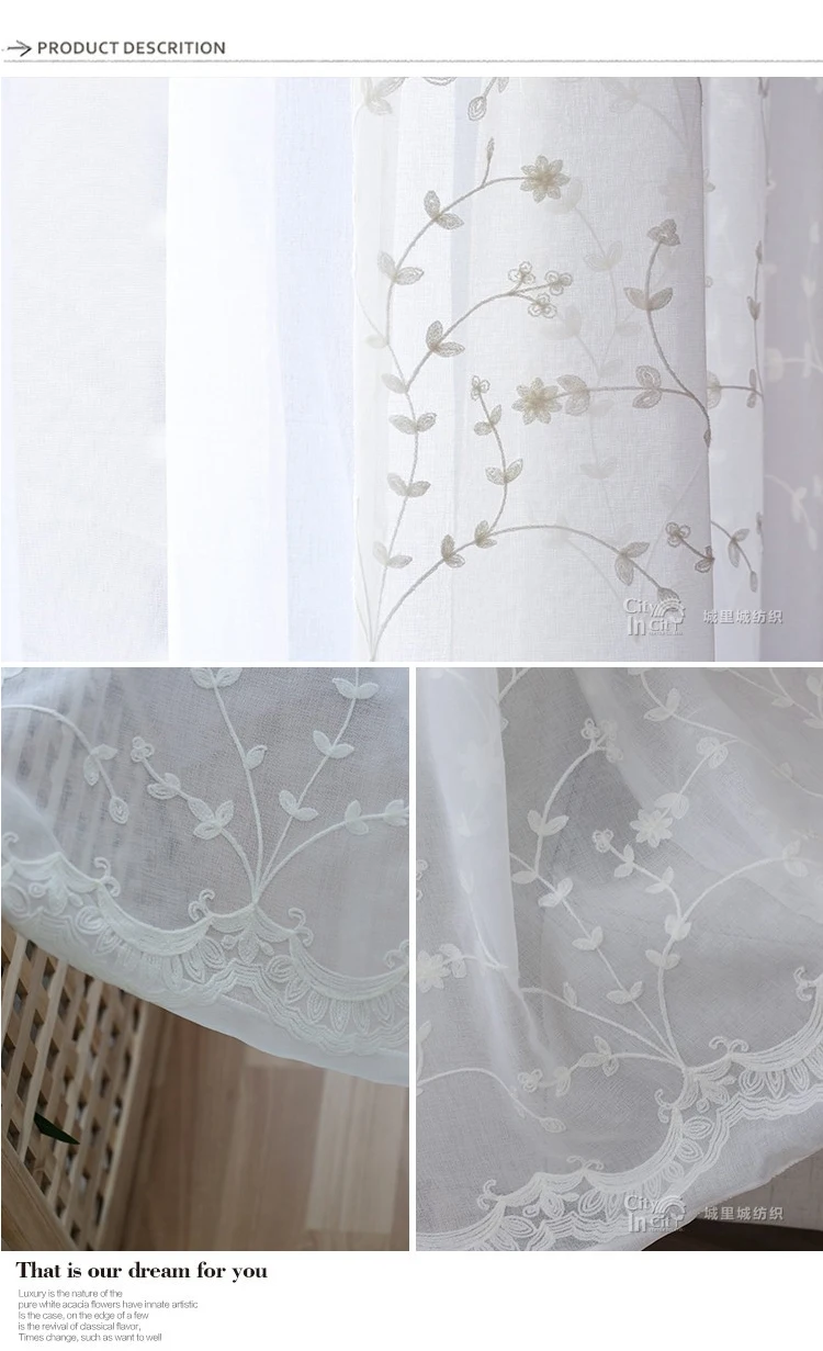 Innermor Embroidered White Curtains Tulle Curtain for Kitchen and Bedroom Customized for Livingroom Voile Children Girls Hotel