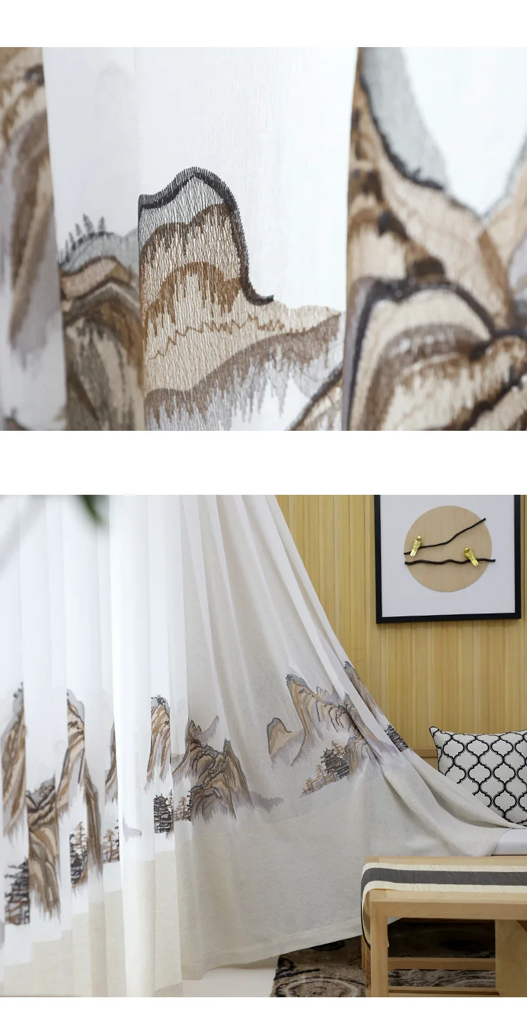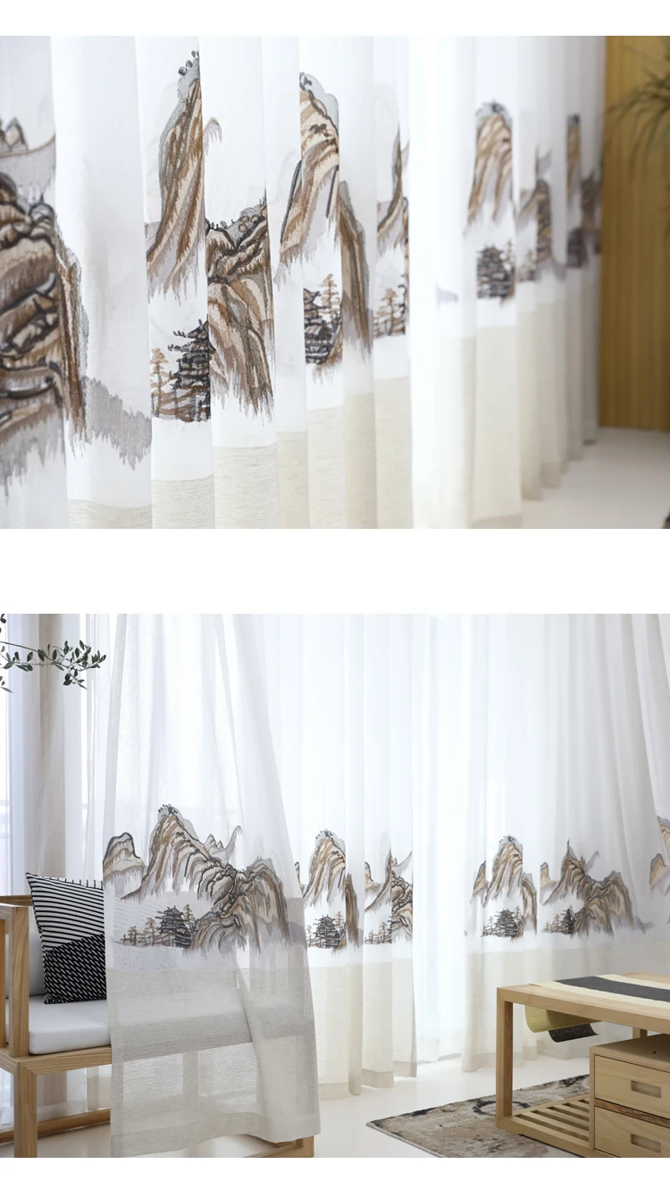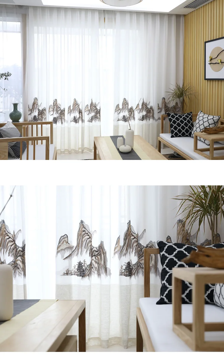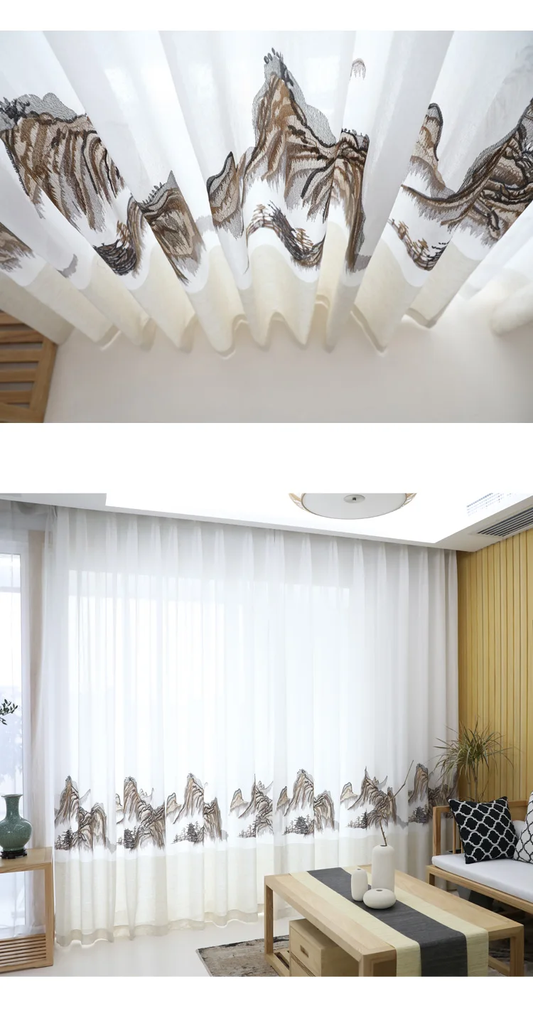 Home Doors, Windows ,Curtains & Signage Curtains Window Curtains Hangzhou Qichen Import And Export Co., Ltd. Innermor Embroidered Mountains Tulle Curtain For Living room Home Decor Soft Curtain for bedroom and Kitchen Window Ready Made