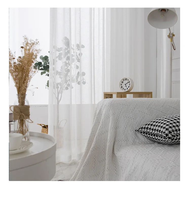 Innermor ready made curtains for the living room tulle invisible Cheap White Tulle Curtain Sheer Linen Curtains