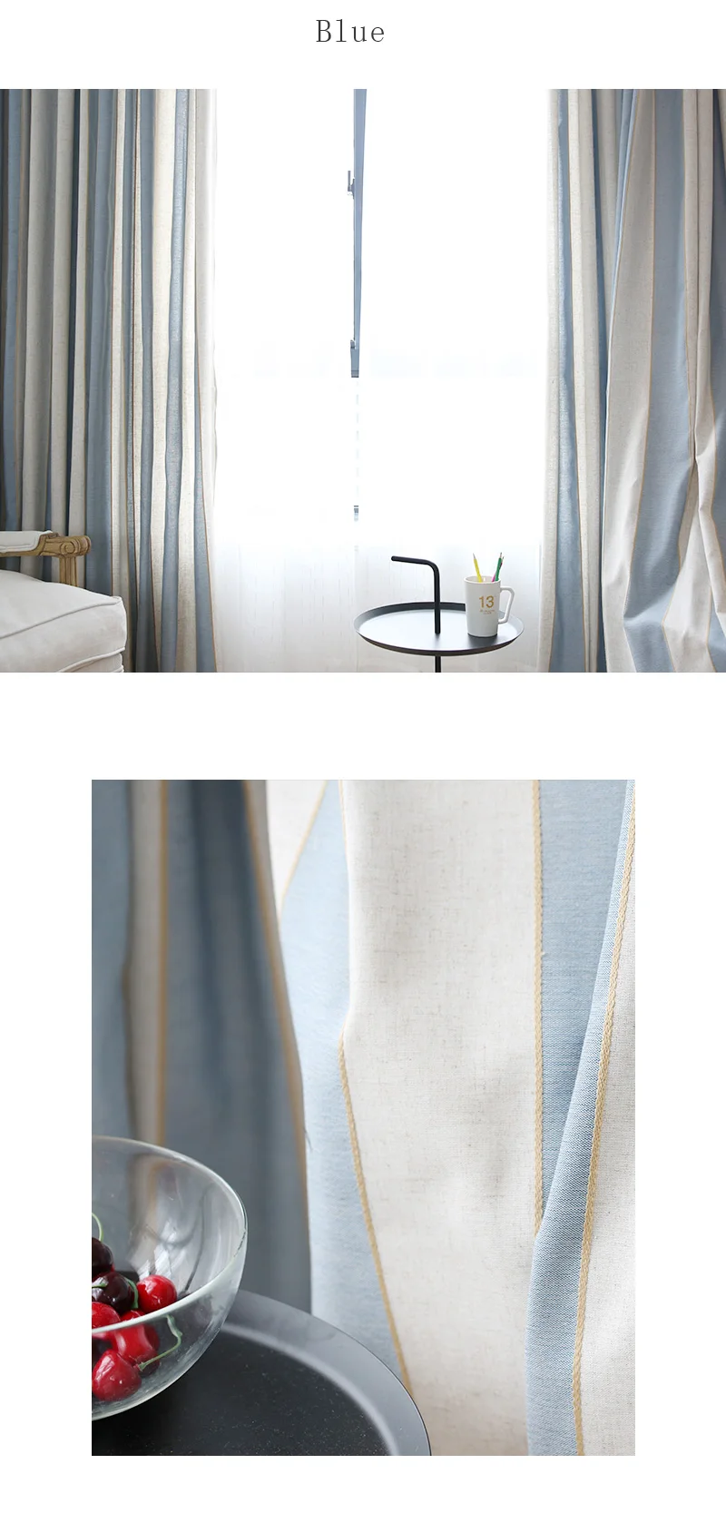 Innermor Modern Mediterranean Blue-White Stripe Bedroom Window Thick Curtain Semi-shading Curtain for Living Room Curtain Fabric