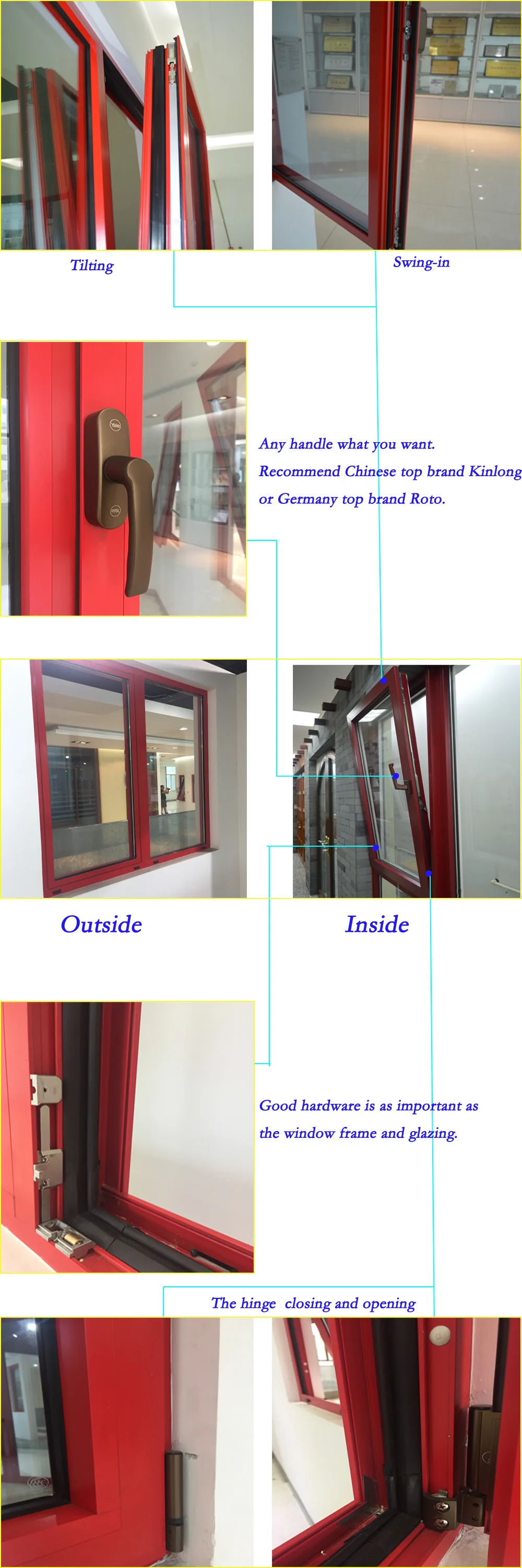 Red Color Thermal Break Aluminium Alloy Double Tempered Glazing Top Quality Tilt Turn Window For House