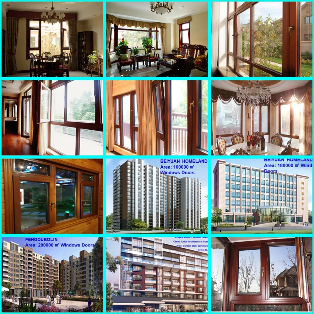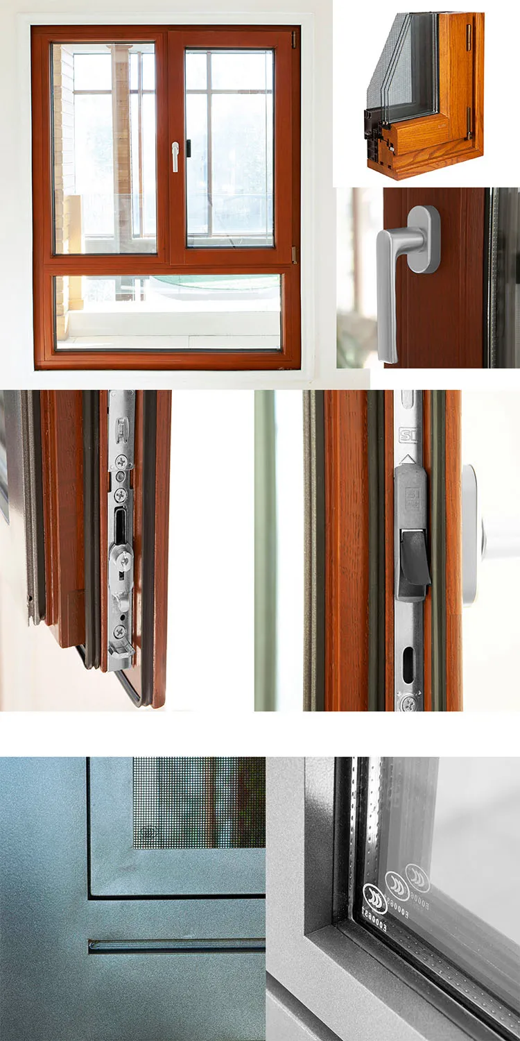 Aluminum clad oak wood triple glazing tempered glass soundproof tilt and turn windows for villa