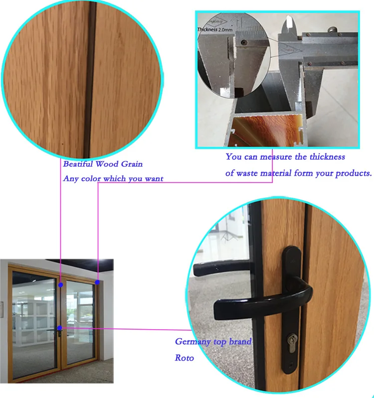 Thermal break aluminum tempered glass casement hinged doors for office house