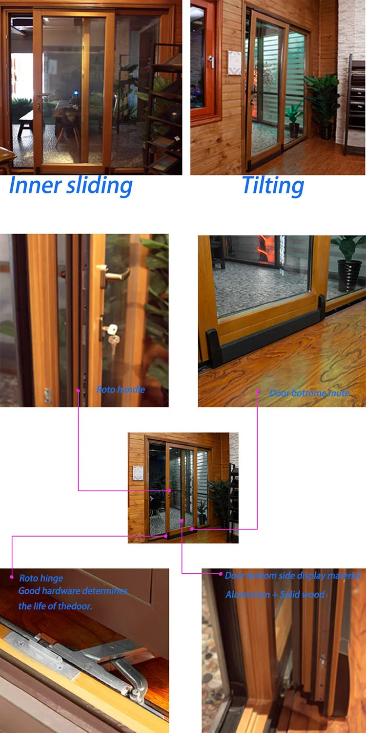 Aluminum clad wood double pane toughened glass soundproof tilt sliding door for dining room