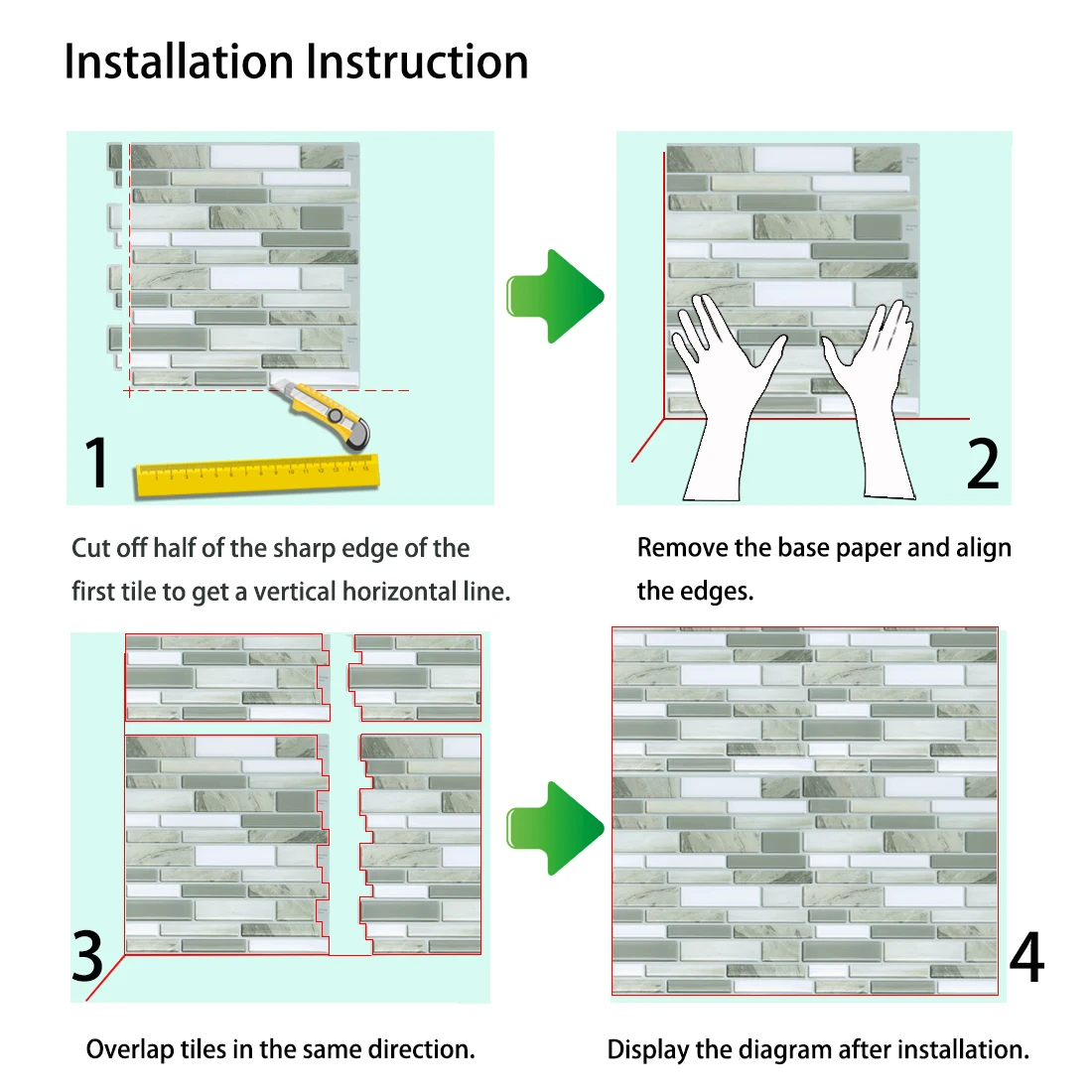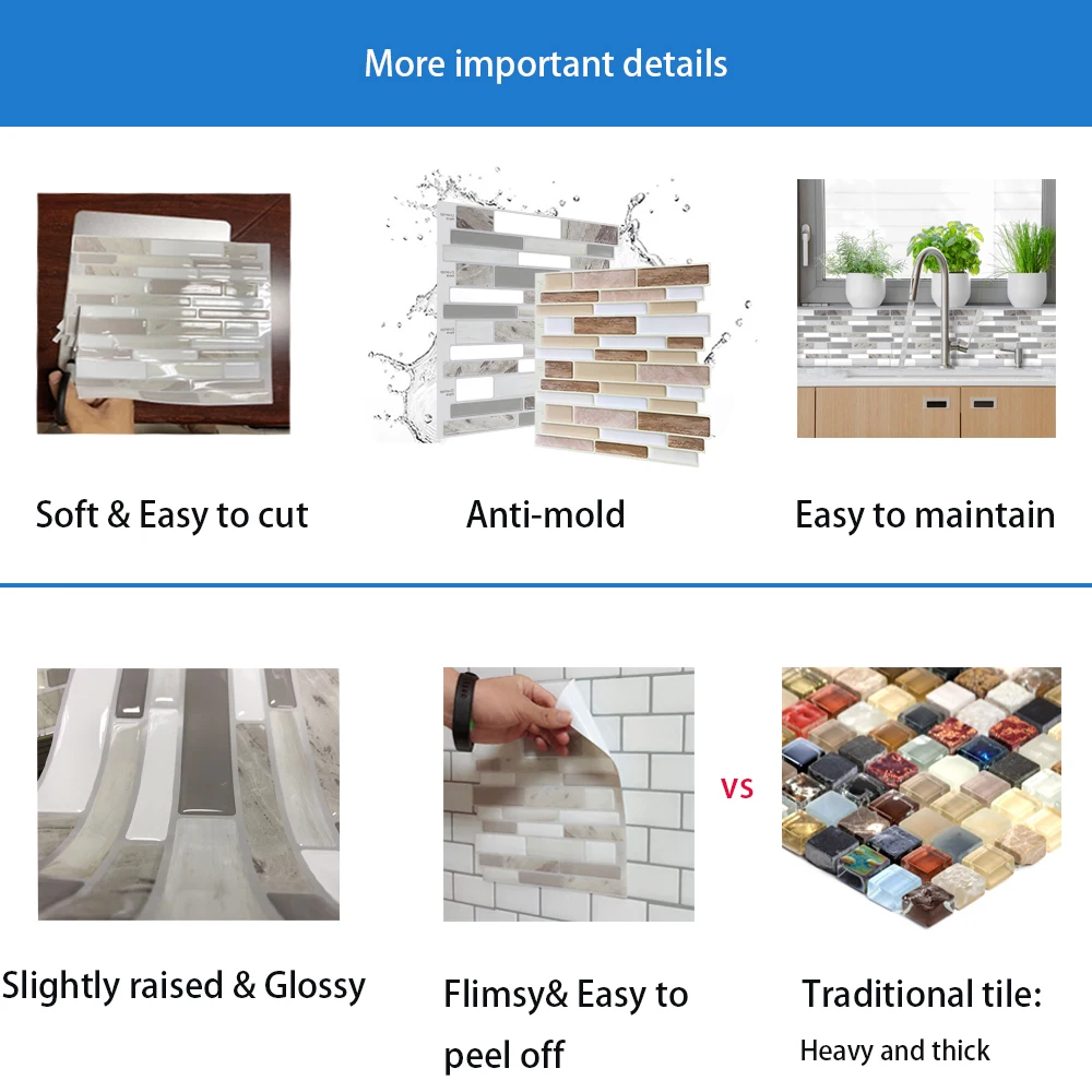 Advantages | Easy to install, 3D effects, Waterproof, Oil-proof, Self-adhesive and Eco-friendly |