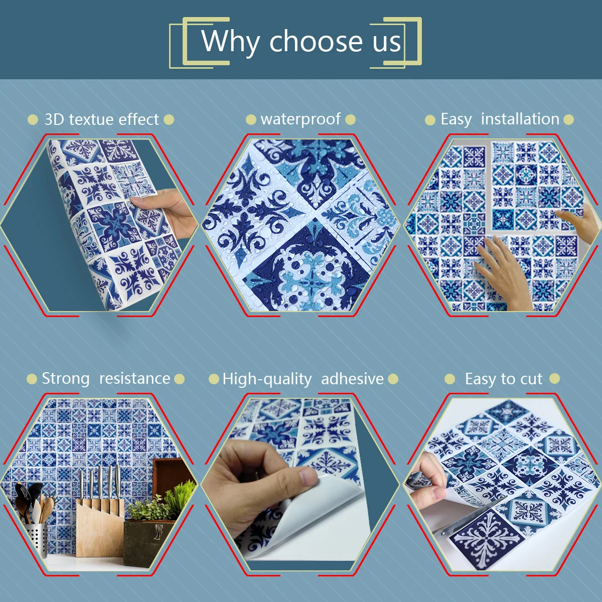 Moroccan Style Kitchen and Bathroom Backsplash Mosaic Wall Tile 3D Gel Sticker