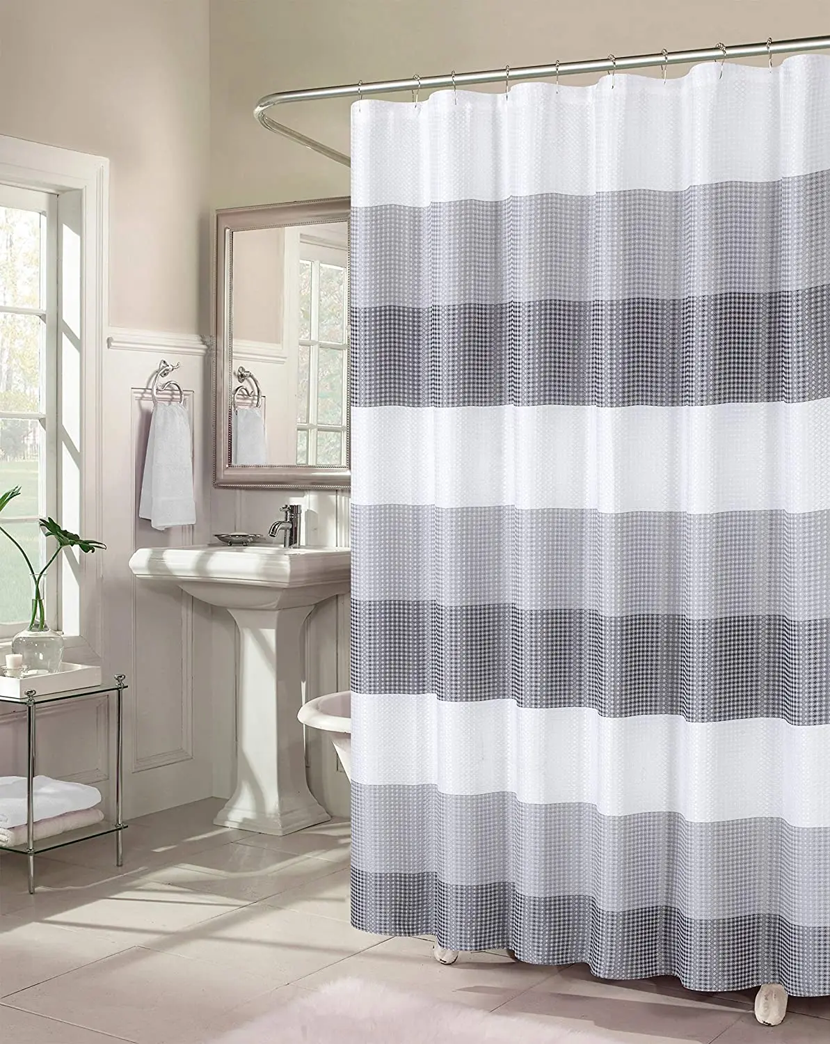 Home Bathroom Products,Sinks Bathroom Accessories & Others Others Shaoxing Keqiao Buge Import&Export Co., Ltd. Wholesale stylish waffle weave ombre stripe fabric shower curtains for bath room