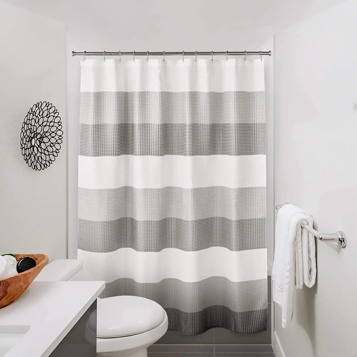 Wholesale stylish waffle weave ombre stripe fabric shower curtains for bath room