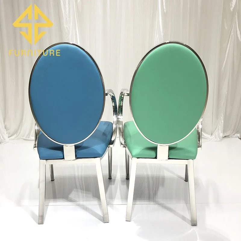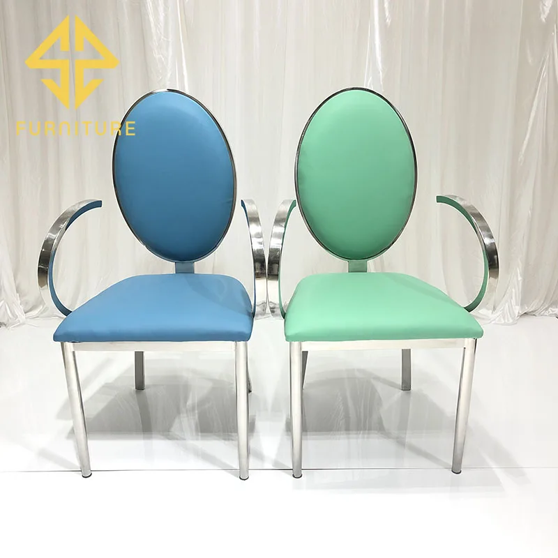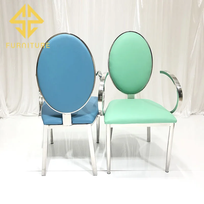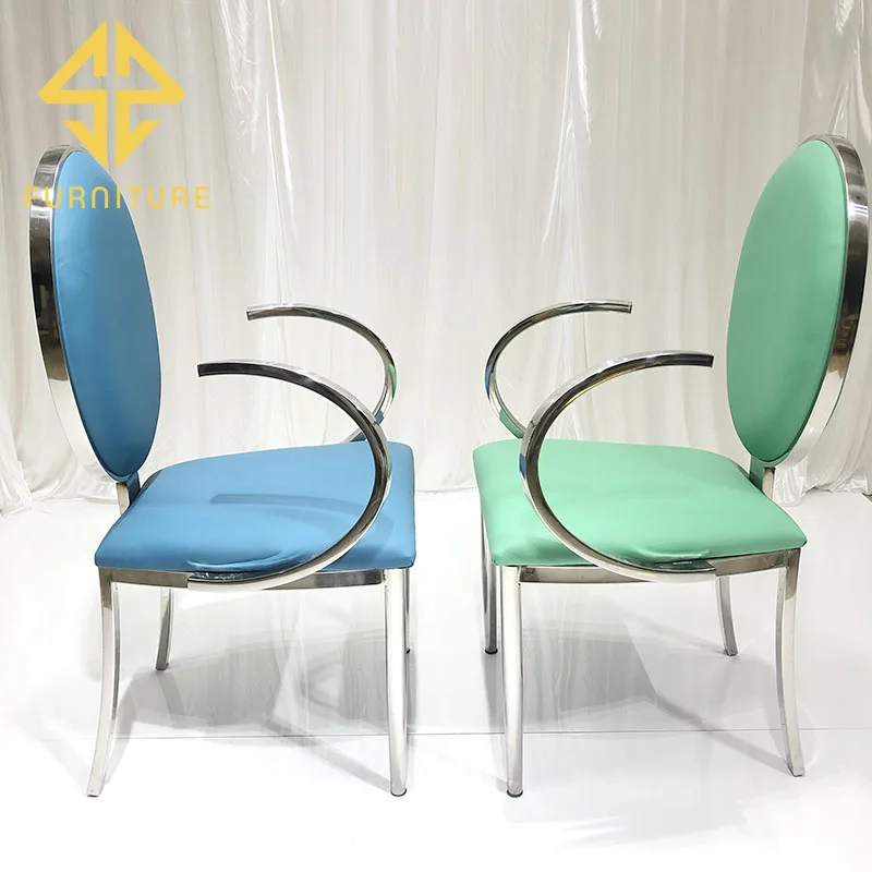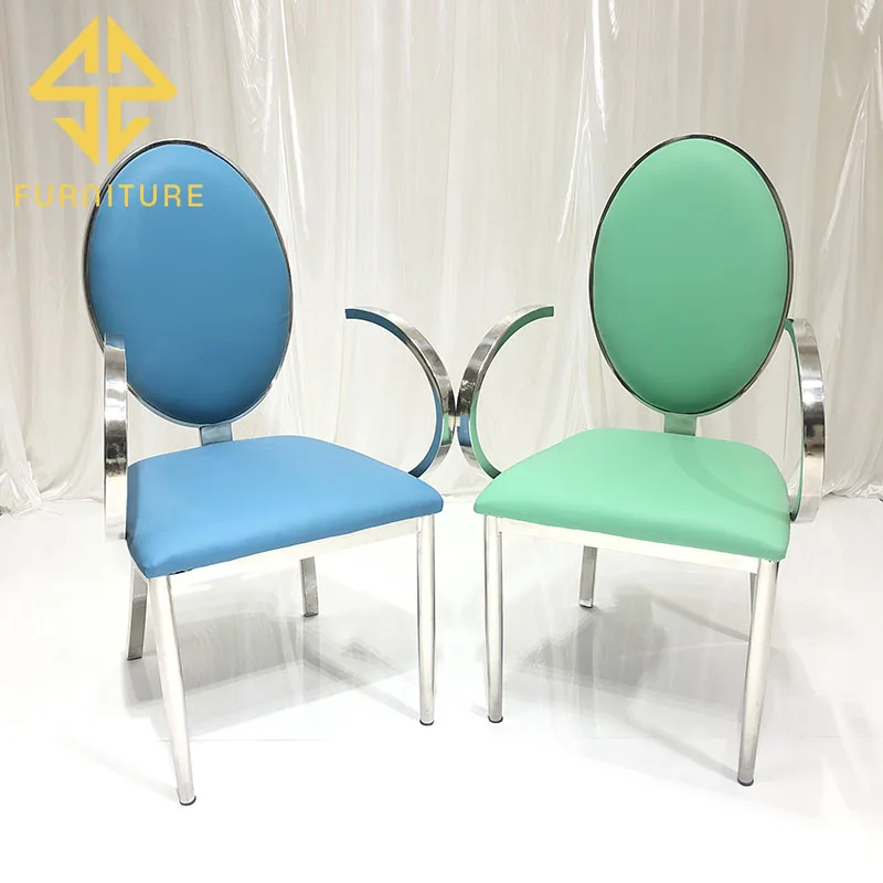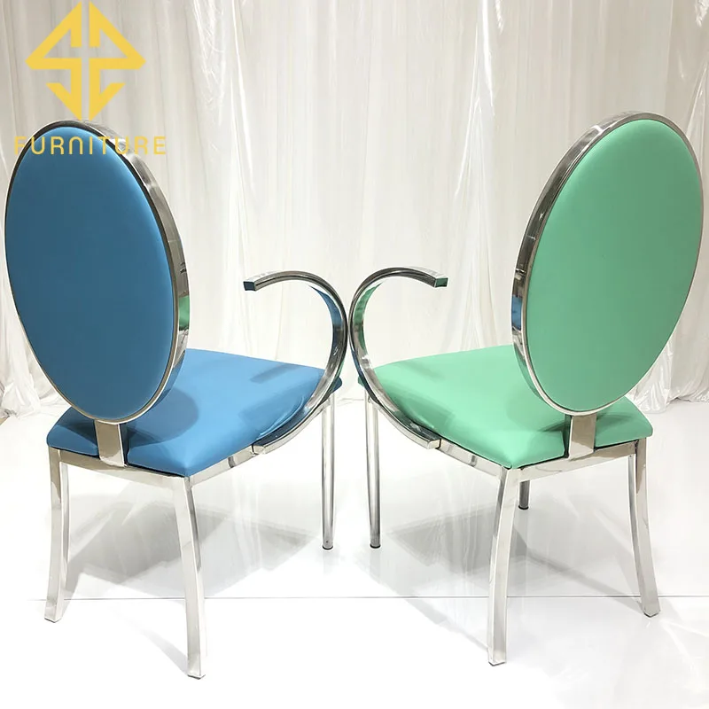 Foshan cheap modern wedding stainless steel with armrests can use chair covers for dining chairs