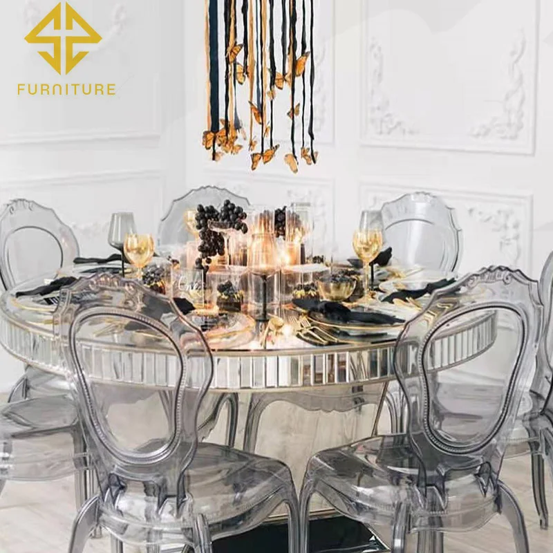 Foshan factory newly designed mirror round table chair set for wedding banquet chair with regular client feedback