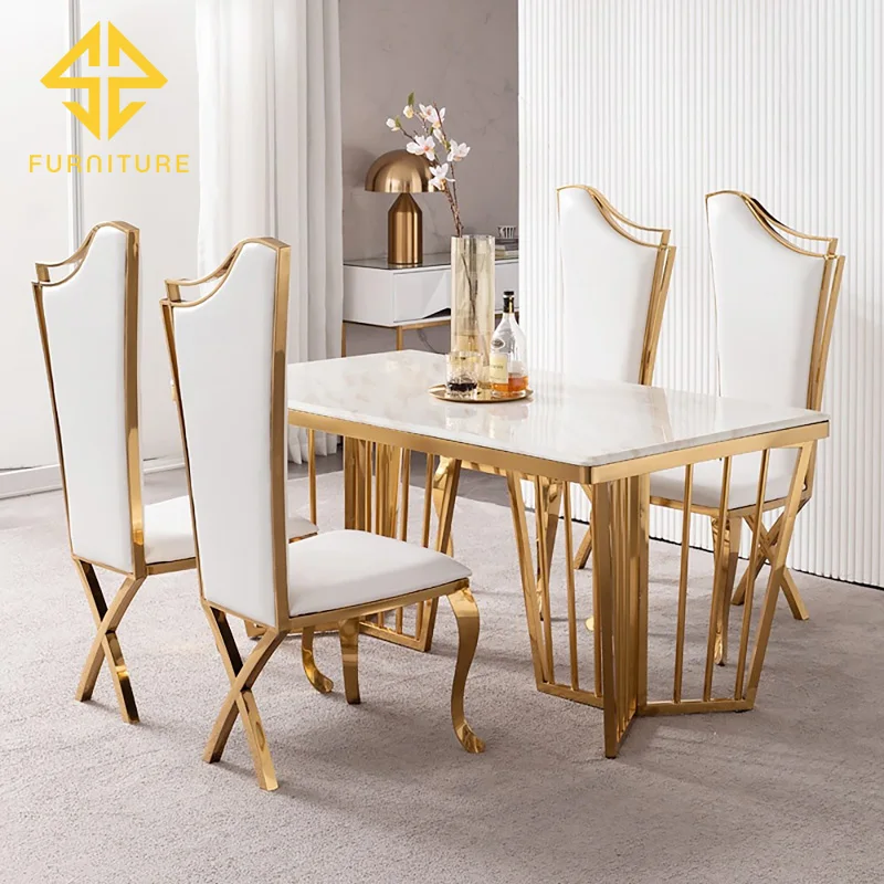 SAWA hot sale luxury modern PU leather seat wedding home stainless steel dining chair