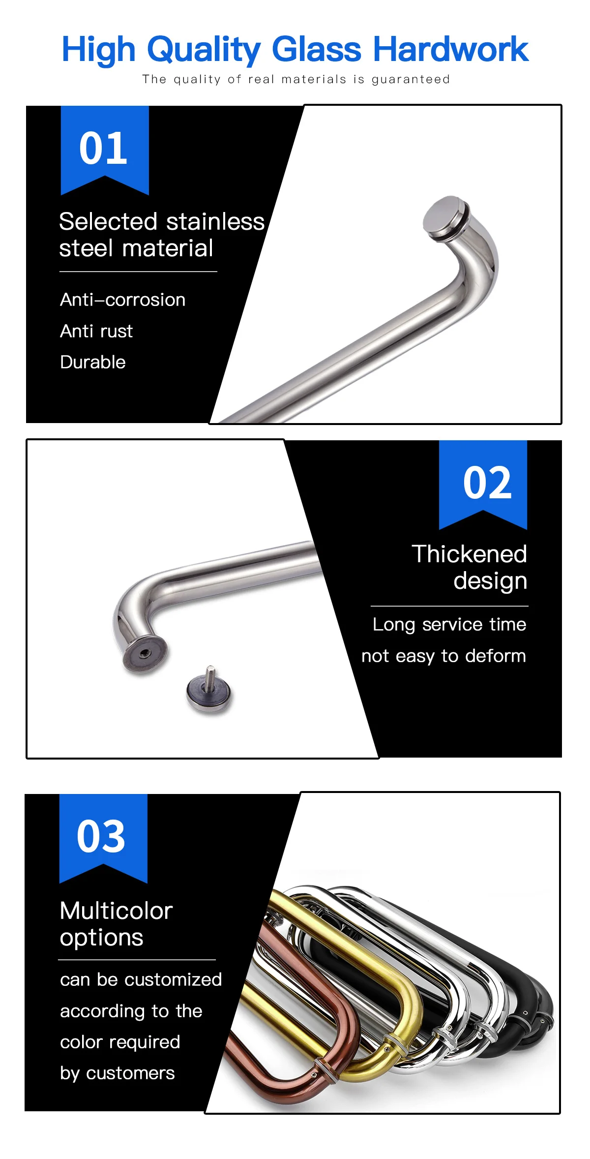 Stainless Steel Glass Door Pulls High Polished Shower Sliding Glass Door Handle