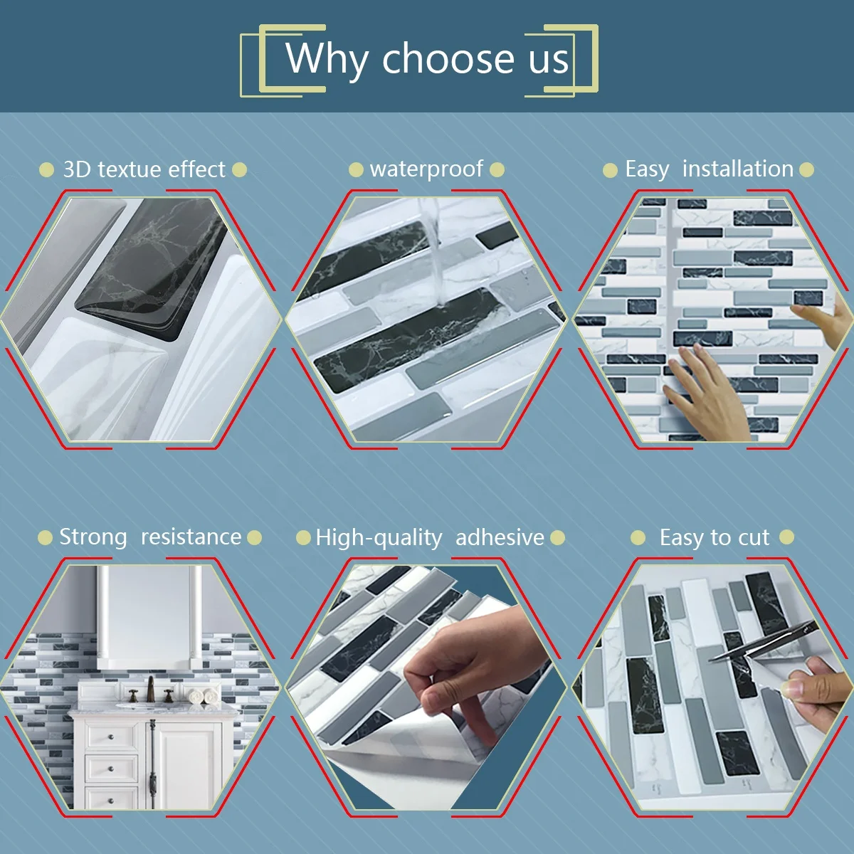 Mosaic Self Adhesive Tile Backsplash 3D Wall Sticker DIY epoxy Bathroom Kitchen Home Decor Oil-Proof Waterproof Wall Stickers