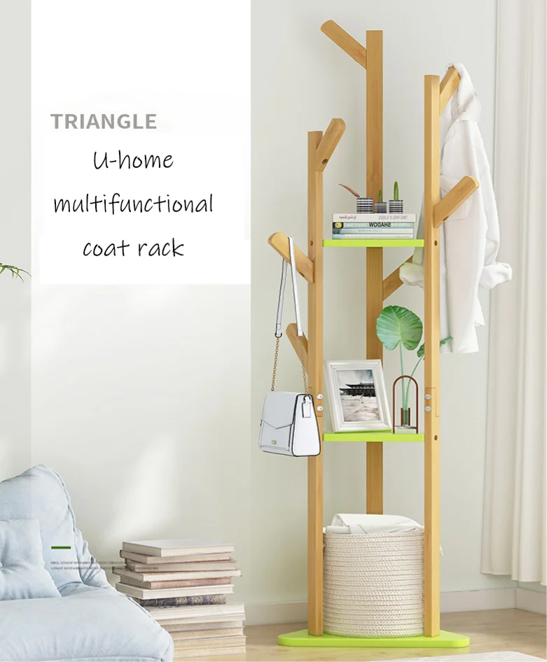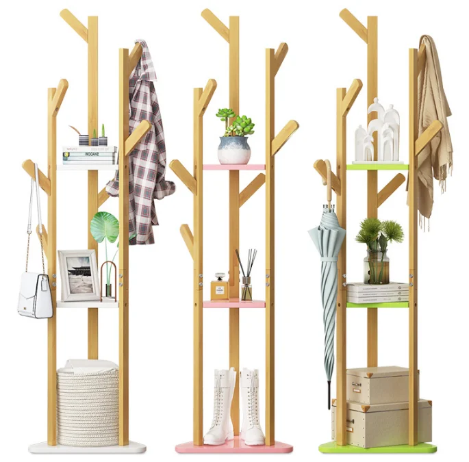 Amazon hot sale Bamboo 3 Tier storage coat rack furniture standing wooden coat racks