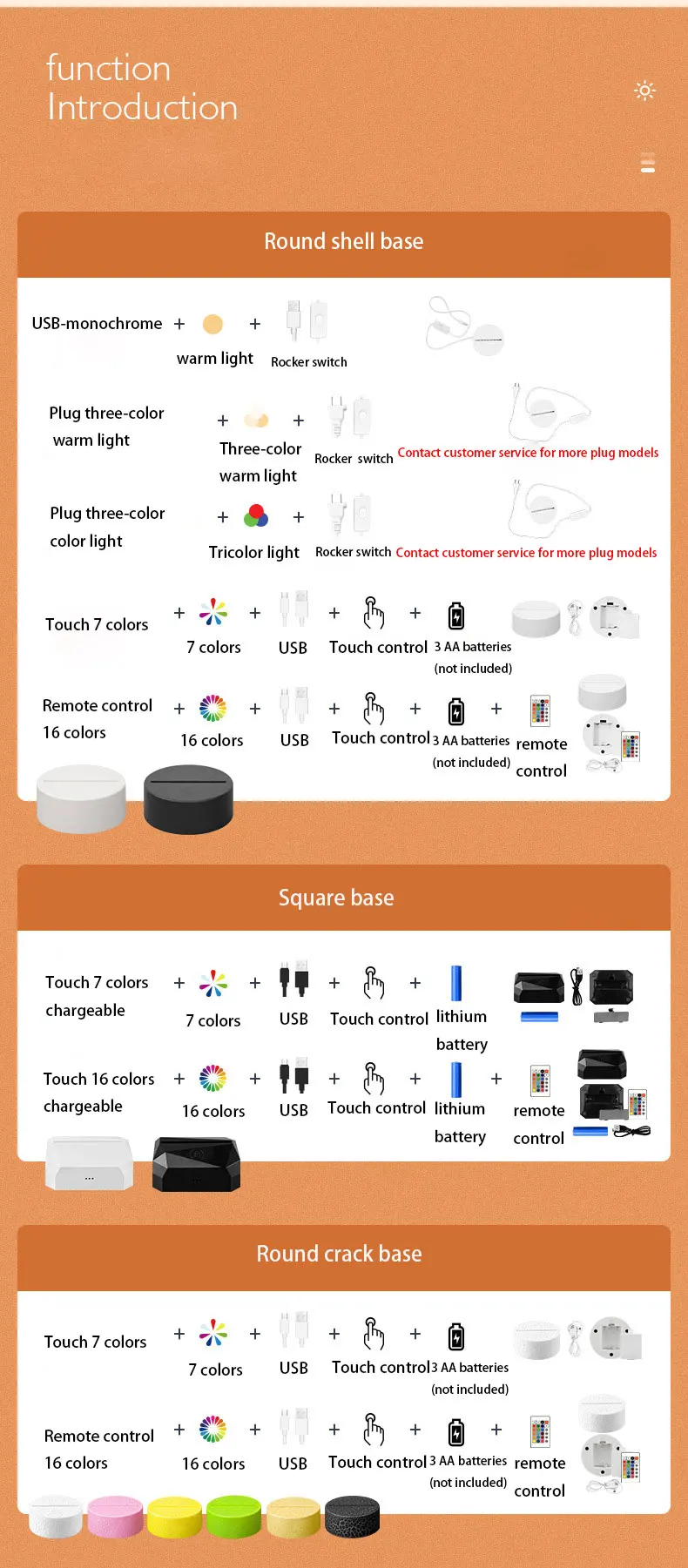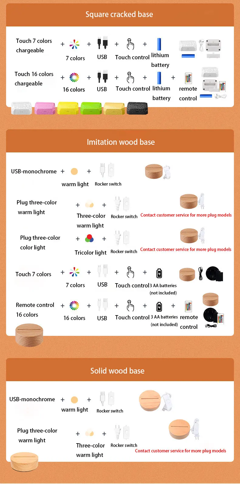 Home Lighting, Artwork & Interior Decoration Accessories Indoor Standard Lighting Nightlights Chengdu Chenxixi Trade Co., Ltd. European Wholesale ABS Lamp Night Light Touch Base Remote Control 3d Wooden Acrylic Led Night Light Base
