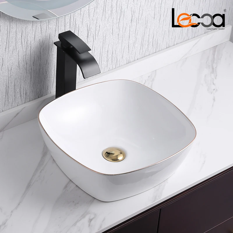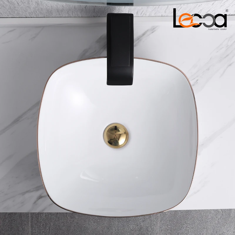 Home Bathroom Products,Sinks Wash Basin Guangdong Olilecca Sanitary Ware Co., Ltd. Luxury design square shape wash basin electroplated gold colored ceramic bathroom sink
