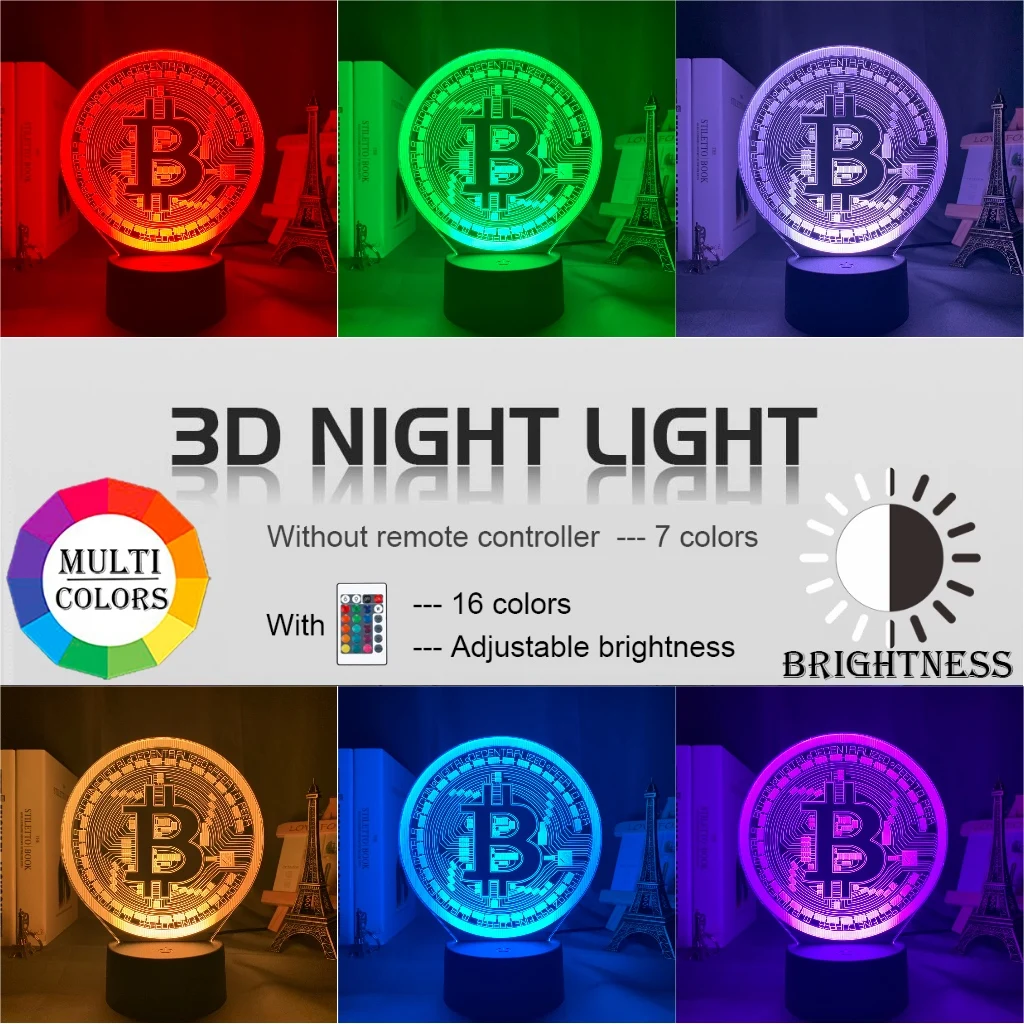 Home Lighting, Artwork & Interior Decoration Accessories Indoor Standard Lighting Nightlights Chengdu Chenxixi Trade Co., Ltd. Acrylic Bitcoin 3d Led Night Light Room Decorative Nightlight Touch Sensor 7/16 Color Table Night Lamp