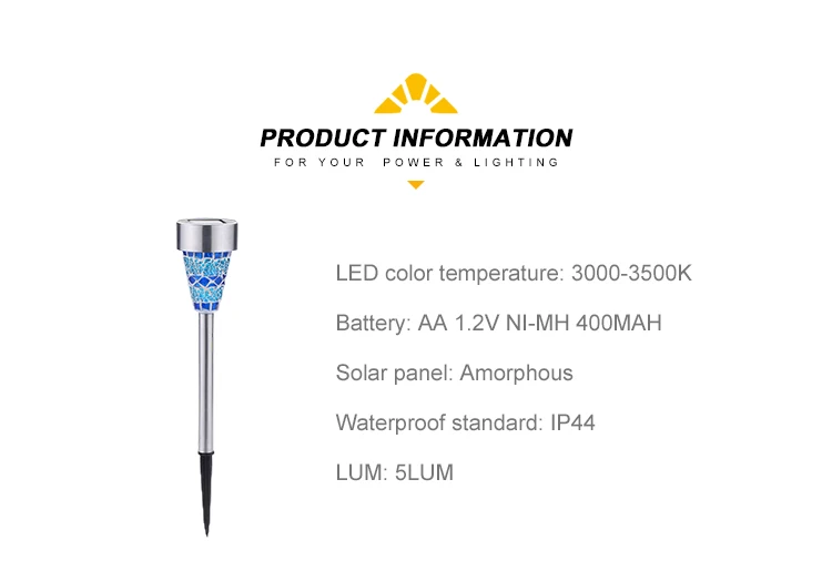 waterproof mosaic stainless steel lights outdoor garden solar led small christmas tree stake light