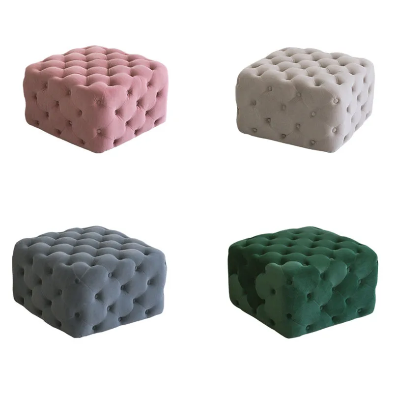 Customized logo living room luxury storage velvet pink chair ottoman