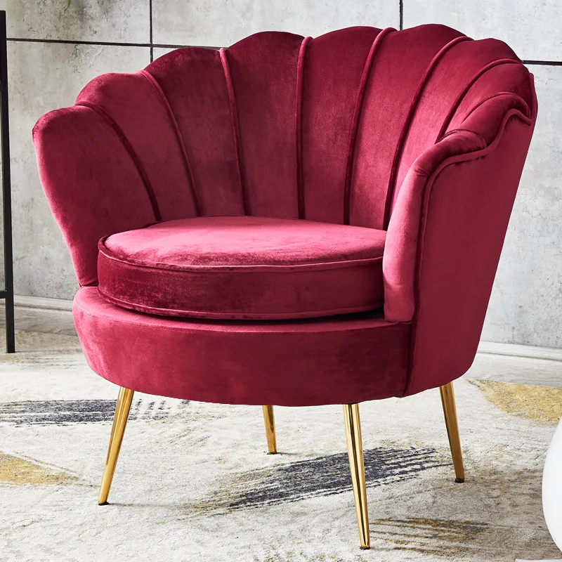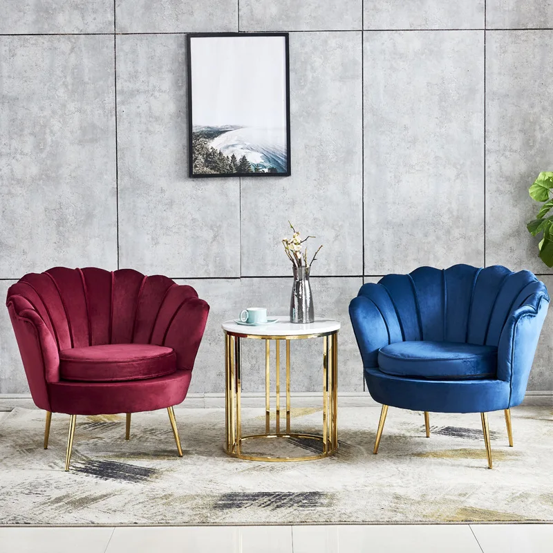 Golden Legs Living Room Chair Metal Leg Velvet Fabric Tulip Chair