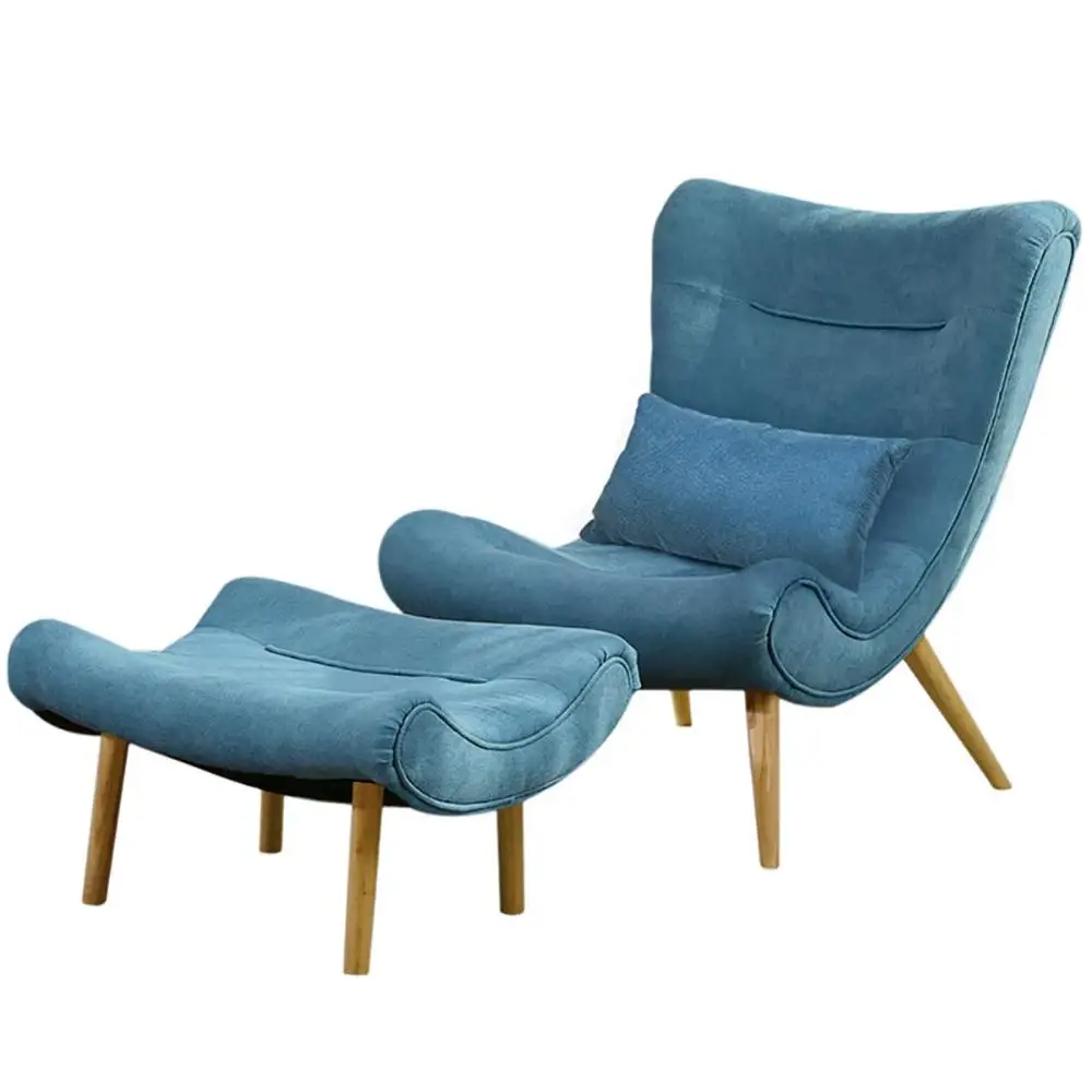 Modern Fabric round lazy chair solid wood leg egg chair with ottoman
