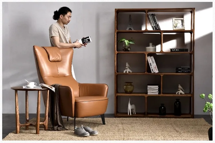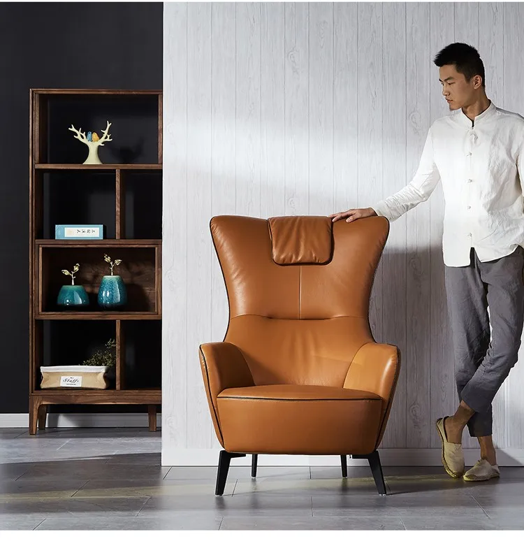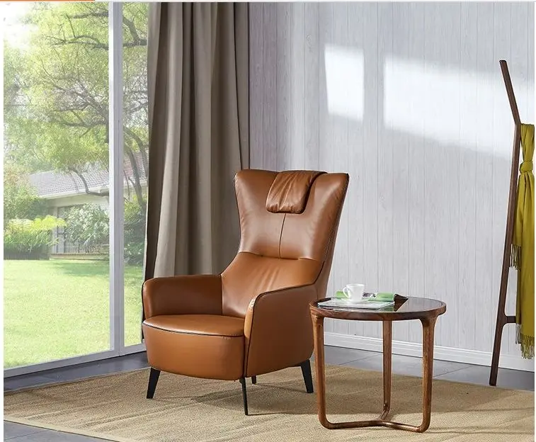 One Seat Armchairs Sofa with PU Leather Modern Living Room Furniture Synthetic Leather American Style Solid Wood Optional