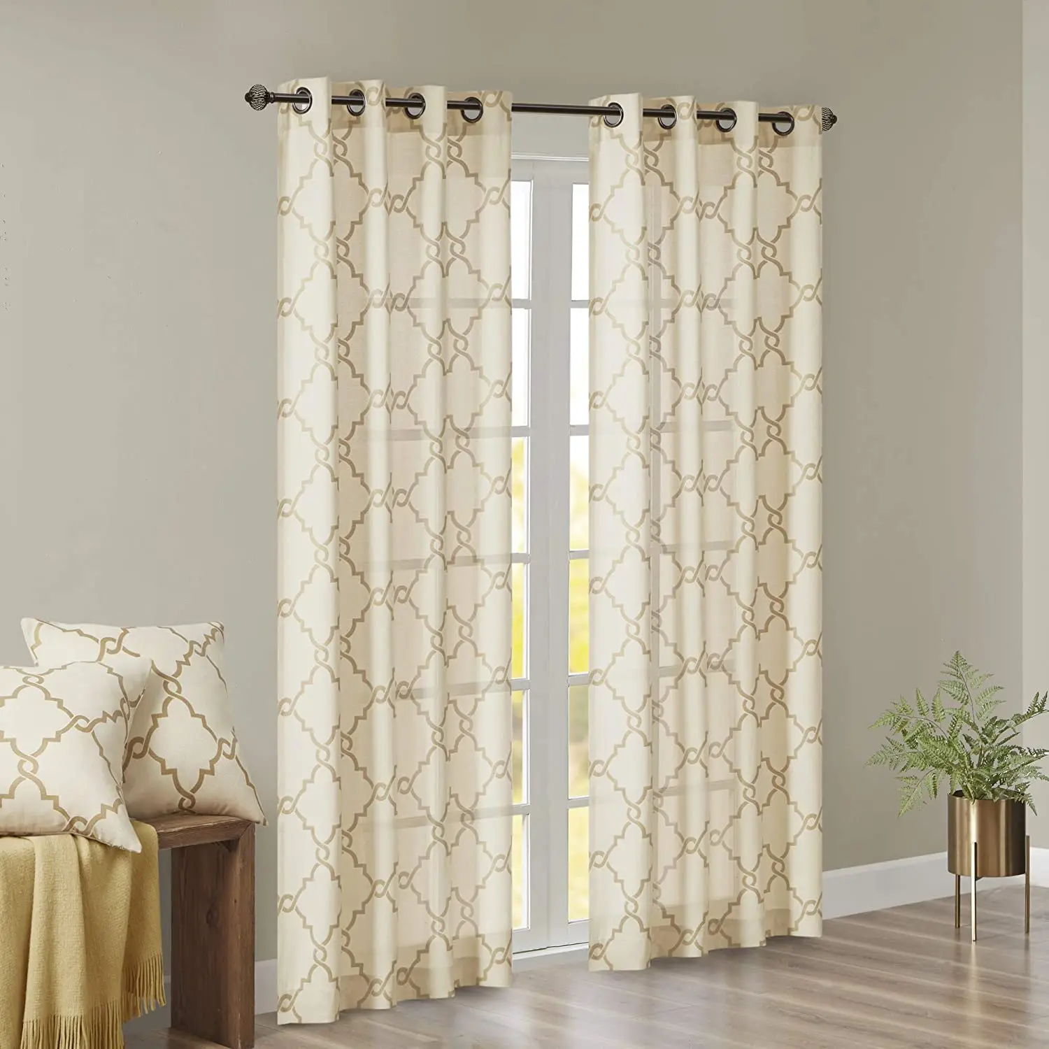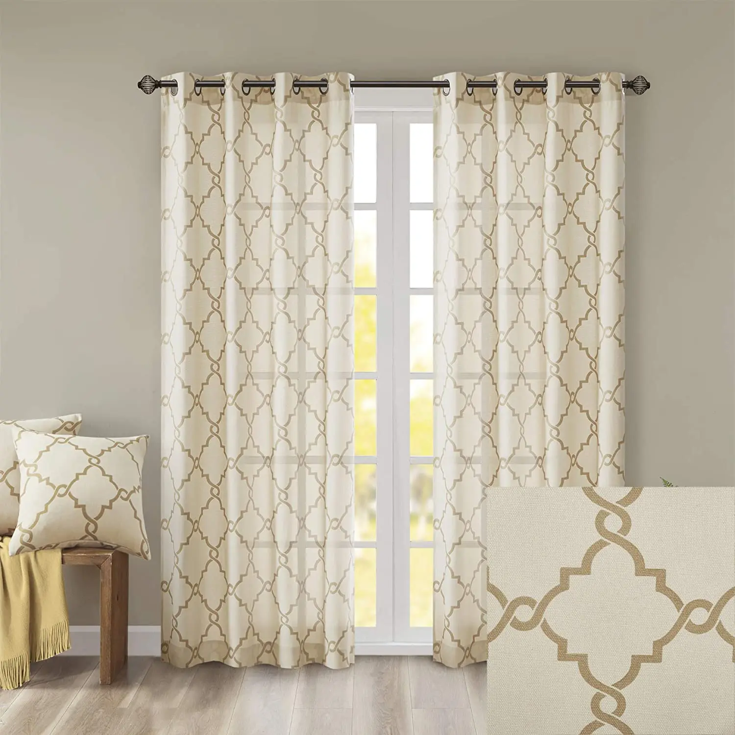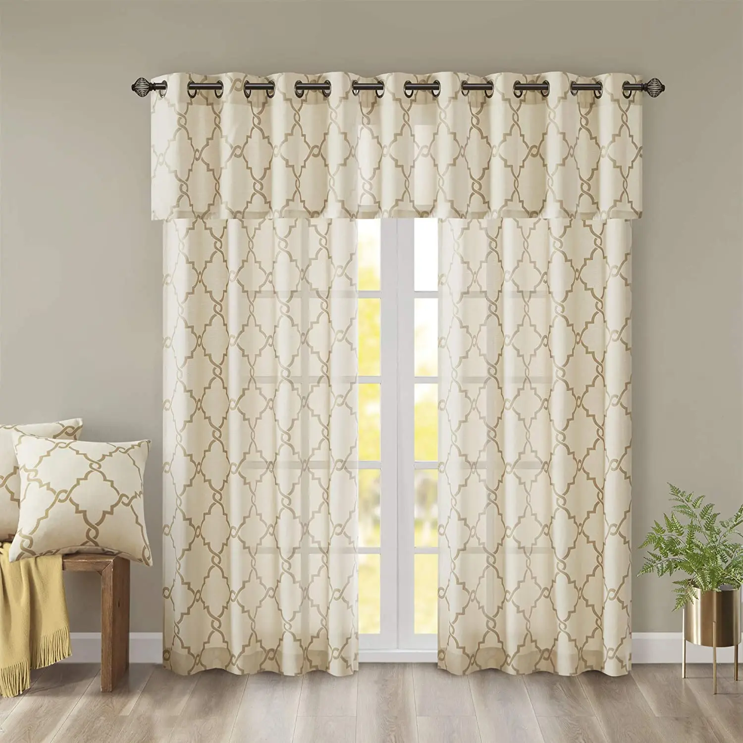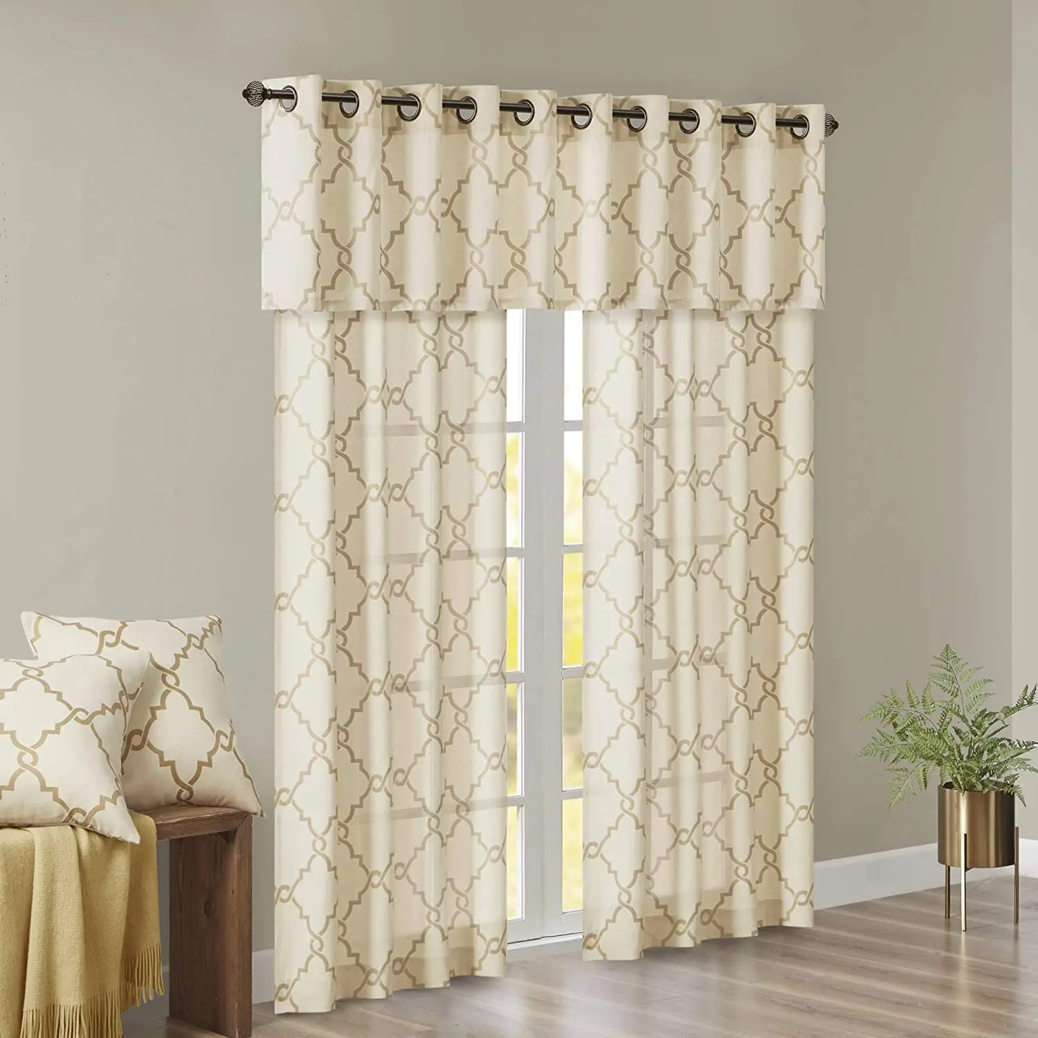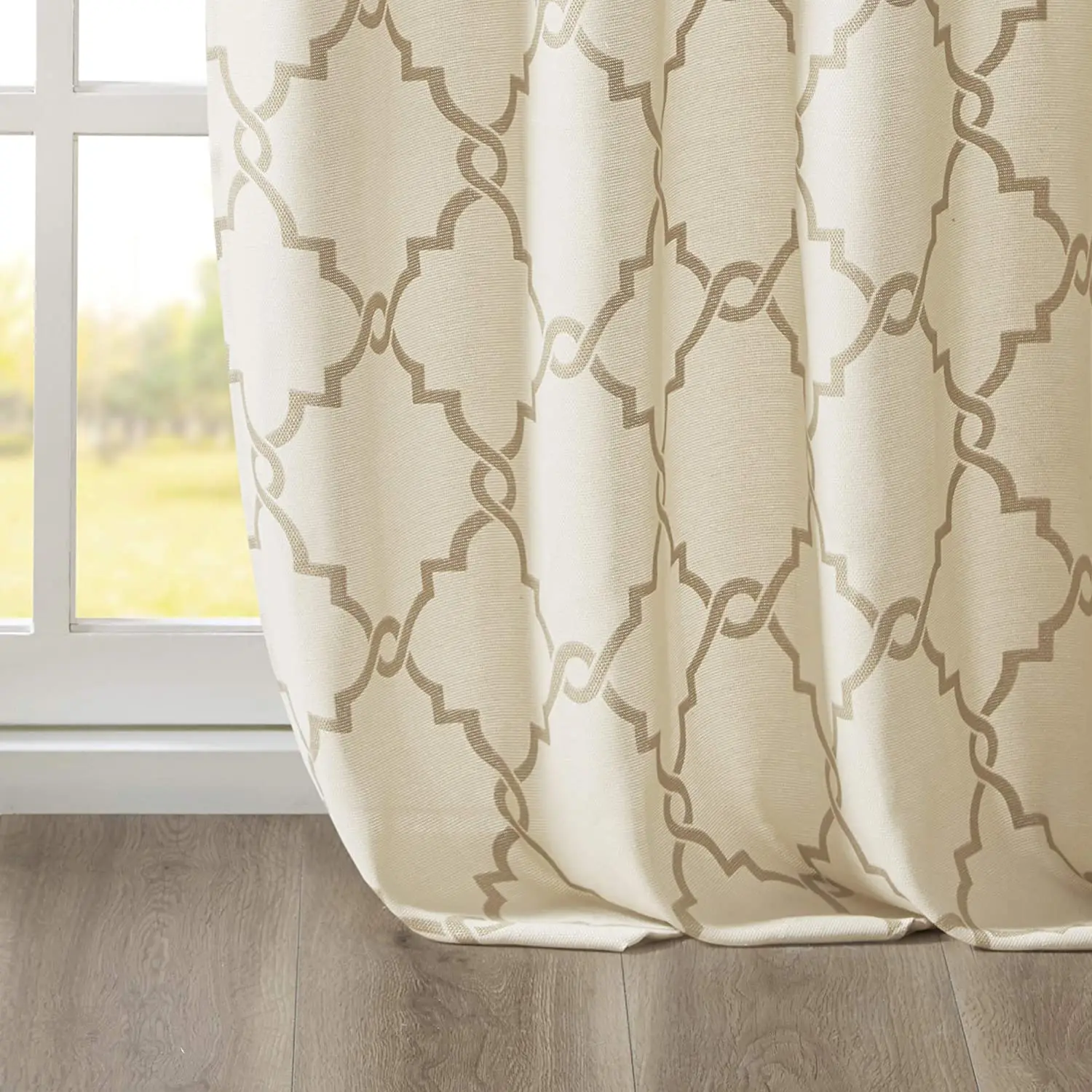 Home Doors, Windows ,Curtains & Signage Curtains Window Curtains Shaoxing Bangfa Textile Co., Ltd. Saratoga Window Curtain Light Filtering Fretwork Print 1 Panel Grommet Top Drapes/Valance for Living Room Bedroom and Dorm