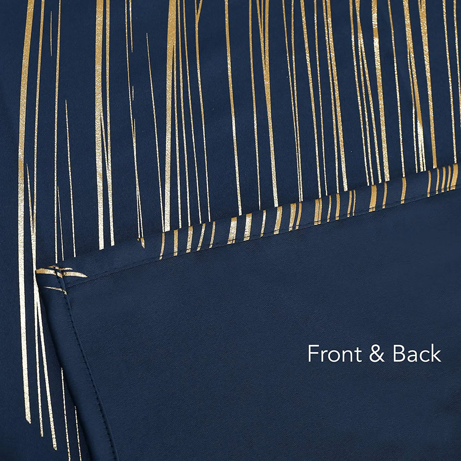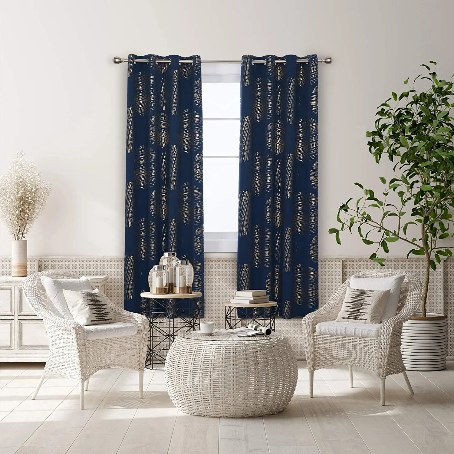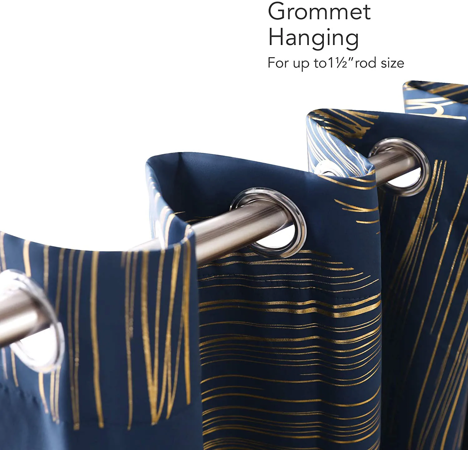 Navy Blue Blackout Curtain Patterned Gold Foil Print Drapes Thermal Insulated Window Grommet Curtains for Living Room