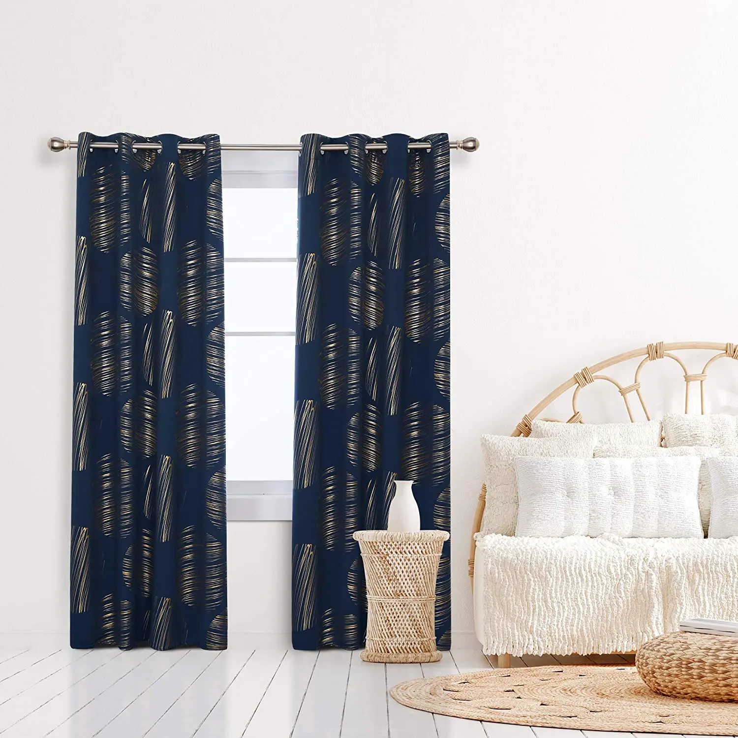 Home Doors, Windows ,Curtains & Signage Curtains Window Curtains Shaoxing Bangfa Textile Co., Ltd. Navy Blue Blackout Curtain Patterned Gold Foil Print Drapes Thermal Insulated Window Grommet Curtains for Living Room