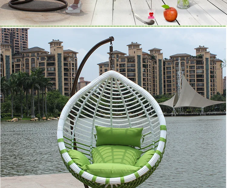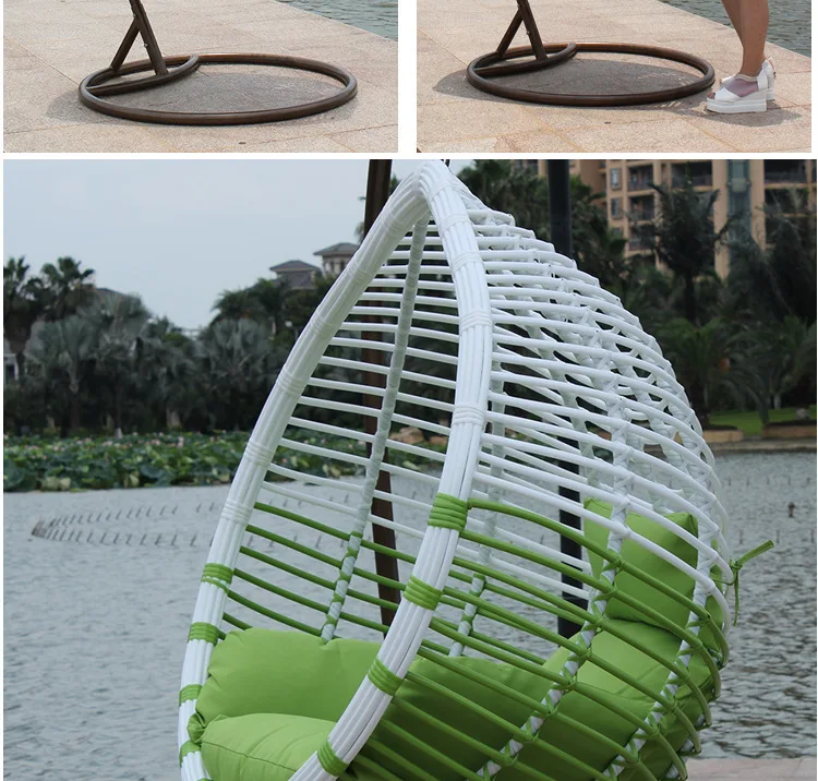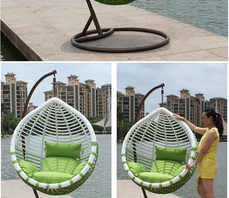 Simple farmhouse style outdoor leisure rattan chair hanging chair with cushion water-drop shaped swing chair hanging egg shape