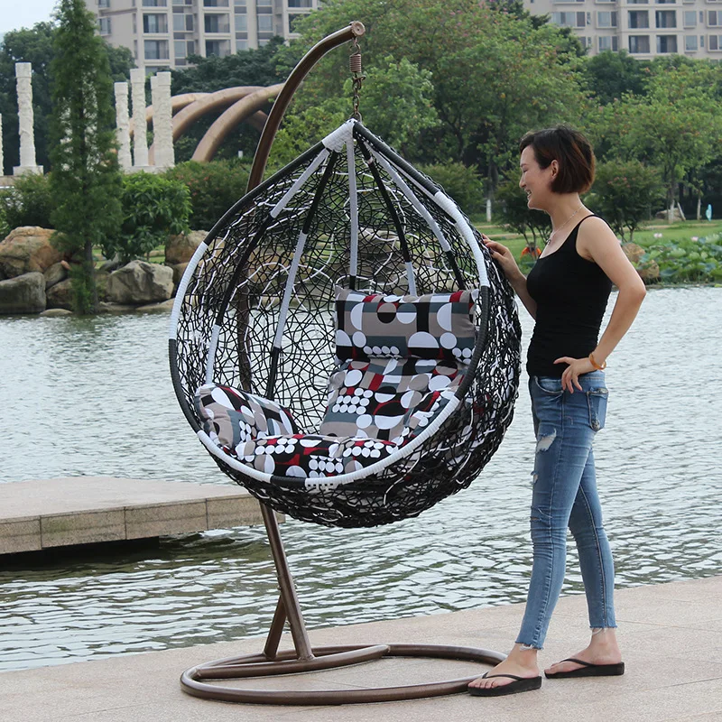 Factory wholesale direct outdoor leisure rattan chair hanging chairwith cushion bird's nest shaped swing hanging chair