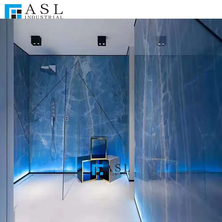 Home Stone,Tiles,Flooring & Walls Material Stone Natural Onyx ASSEL (GUANGZHOU)INDUSTRIAL HOLDINGS LIMITED Interior feature wall cladding and floor natural blue onyx slab tile